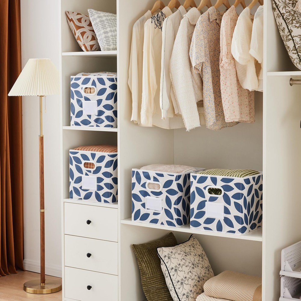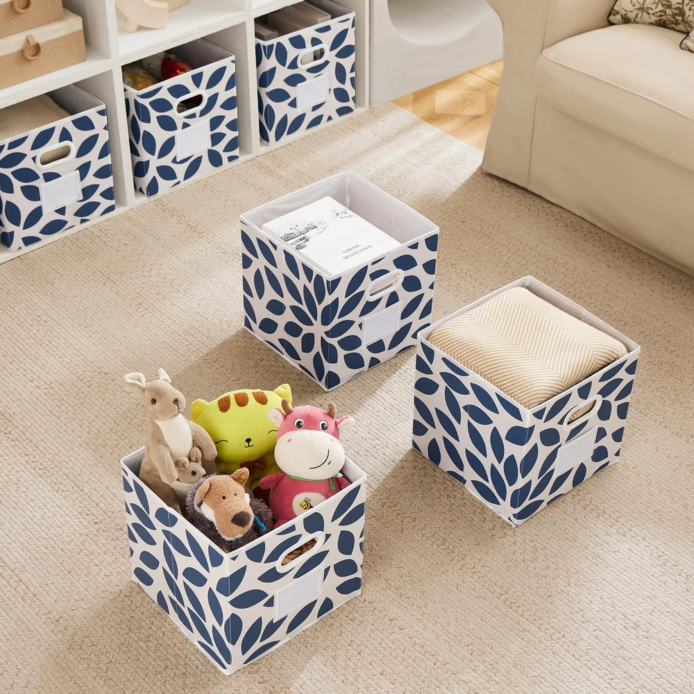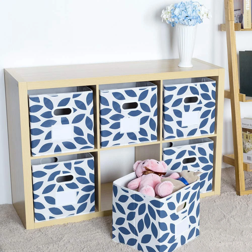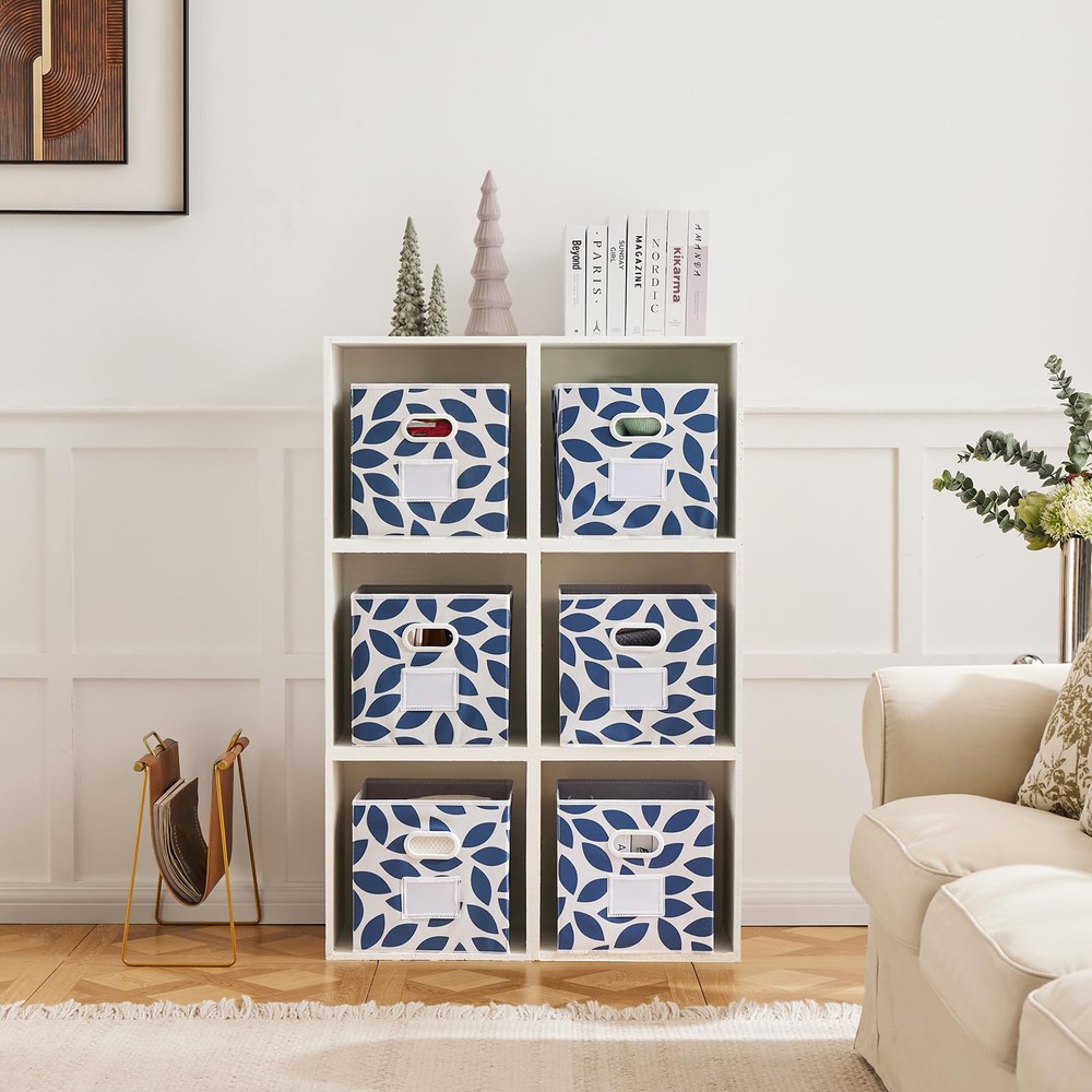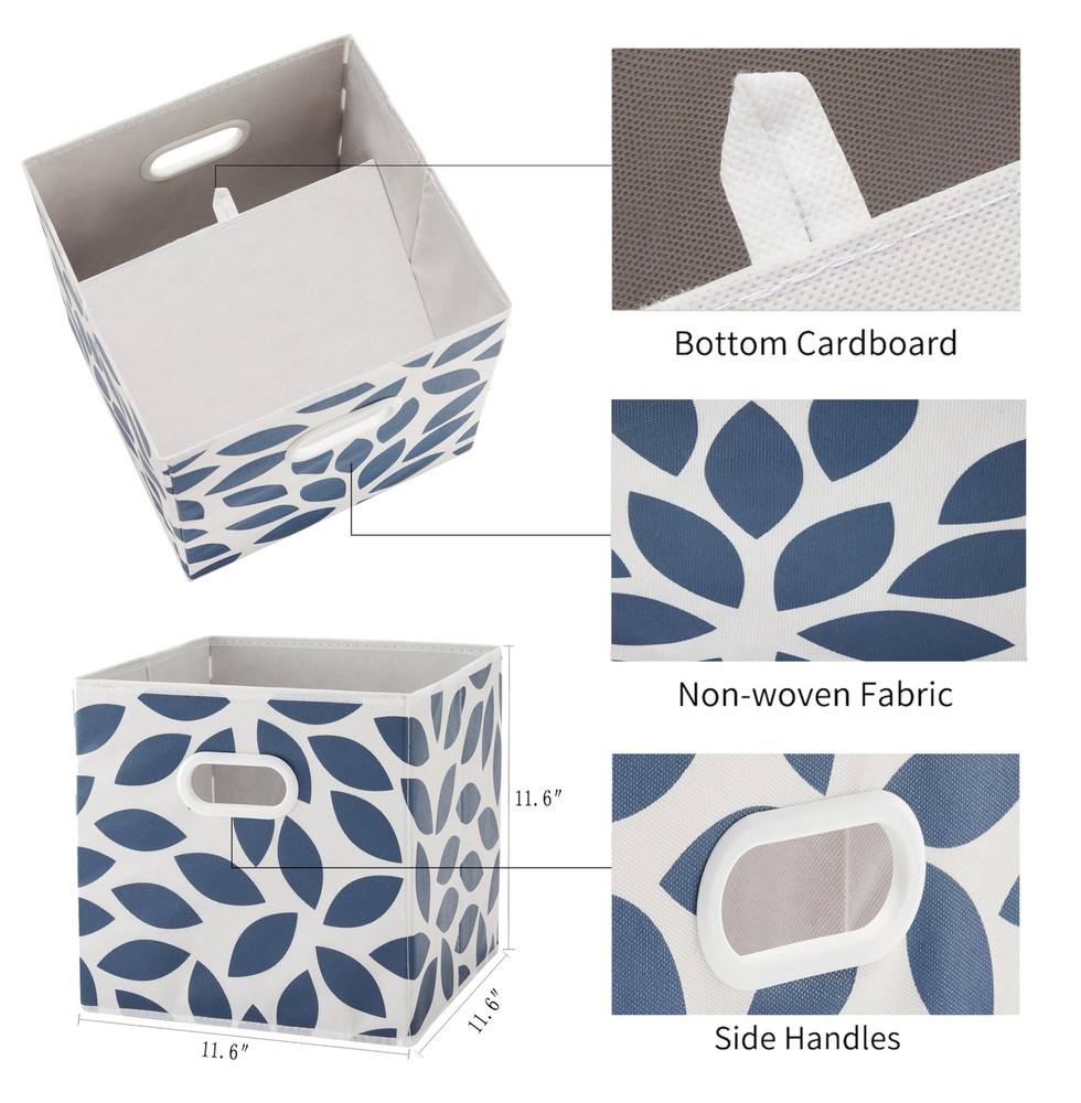 FASHION FABRIC STORAGE CUBES :The storage bins with dual plastic handles for home closet,bedroom,drawers. Set of 6. Multiple colors with beautiful leaf pattern go around all four sides are available , so you can try more . HIGH CAPACITY & MUTIFUNCTION STORAGE: Set of 6pcs, dimension of 11.63"x11.63"x11.63"(L*W*H), maximum storage weight of 5kg (11lb). Great for organizing baby clothes, underwear, socks, toys, albums, games, magazines, craft supplies. Designed to perfectly fit most cube organizers,"you can choose the most suitable size according to your storage furniture needs before making a purchase". COLLAPSIBLE STORAGE BINS: The collapsible feature of Fabric drawer can bring users a better experience, it’s space-saving and convenient to take along. You could simply fold them up when you don’t use or when you need them for travel. ECO & USER-FRIENDLY NONWOVEN FABRIC: This Fabric Basket for Storage is made with non-woven fabric, which is soft, odorless,breathable and non-irritating, protecting both your hands and your items. Besides, it’s a recyclable material which won’t do much harm to the environment. CLEAR LABEL & SERVICE: There is a clear sleeve on the front of the bin that has a paper insert that can be removed or changed to write on, tags can be added in the sleeve for more intuitive . stands by our products. If you have any problems, us for help.