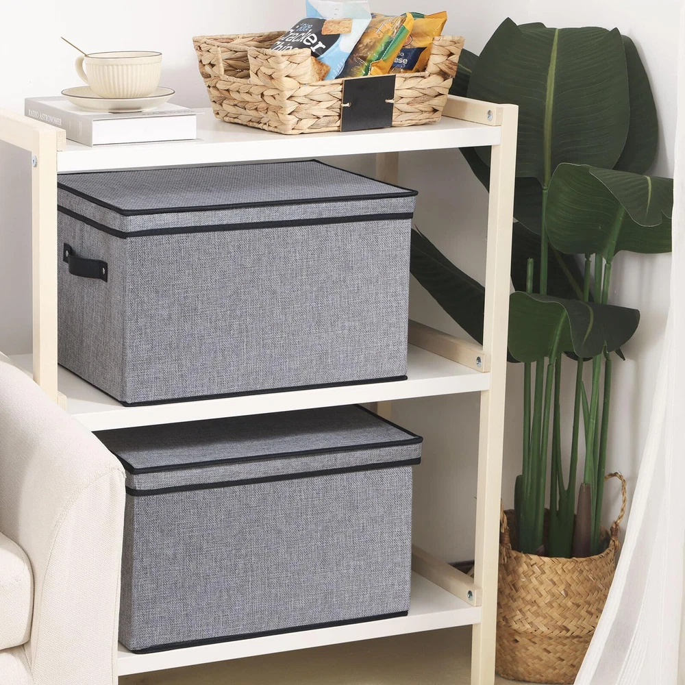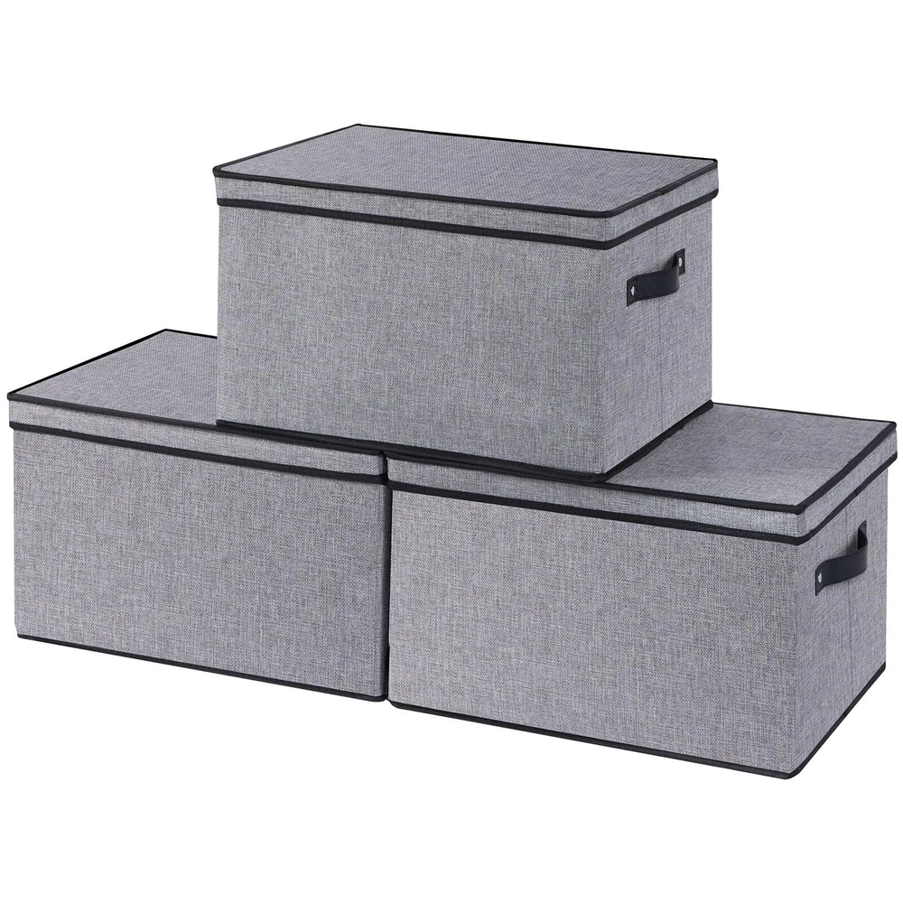 Sturdy Structure: The rectangle storage bins will exceed your expectations for quality. There are stiff cardboards inserted in the bottom and all side walls for support allowing these storage cubes and keep them standing and structural integrity Collapsible Design: The fabric storage cubes can be folded flat when not in use to save space or transport. Fabric baskets are easy to clean, simply dust with a soft dry cloth Durable Enough: Collapsible storage bins with handles are made of high-quality linen fabrics, and the inner layer is made of non-woven fabric, which is durable and strong enough to hold your items. 2 faux leather handles make it easy to pull or carry Multiple Sizes Available: Multiple colors and sizes to meet the storage needs of most households. You can choose different sizes of boxes to combine and store, expanding your storage space Multi-Purpose: Sturdy cube boxes shelves organizers provides a solution to meet many storage needs; Used to organize and store clothes, shoes, office supplies. The ideal organization baskets can be easily placed in the shelf, closet, bedroom