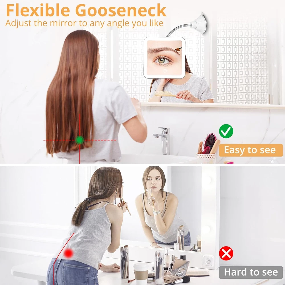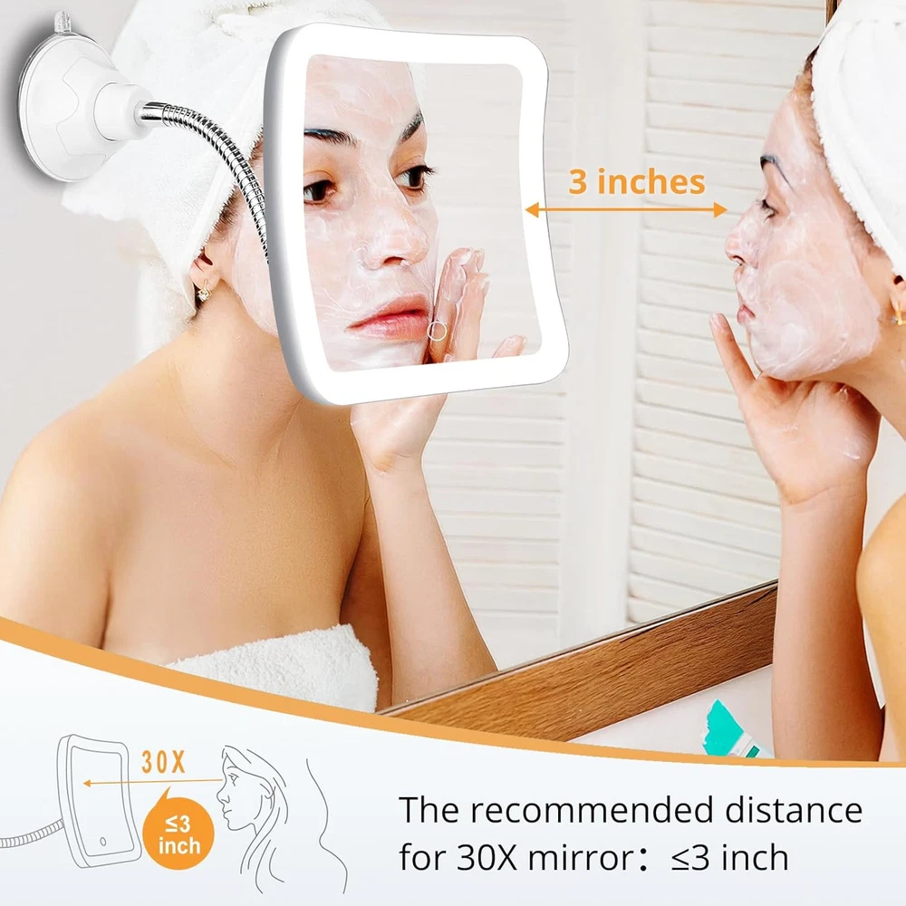 Fabuday Flexible Gooseneck 30X Lighted 17.5"L x 6.8"W, White Product Details Brand: Fabuday Room Type: Bathroom, Bedroom Shape: Square Product Dimensions: 17.5"L x 6.75"W Frame Material: Plastic Mounting Type: Wall Mount Finish Type: Polished Surface Recommendation: Wall-mounted Special Feature: Dimmable, Rechargeable Battery, Lighted, Compact, Adjustable Color: White Specific Uses For Product: Makeup Application, Skin Care, Travel Number of Pieces: 1 Number of Items: 1 Material: Glass, Plastic Frame Type: Framed Assembly Required: No Frame Color: White Magnification Maximum: 3E+1 Manufacturer: Dealer Well Has Smart Features: No Frame Size: 7.75 x 8.5 inches Size: 17.5"L x 6.8"W Is Hanging: Yes Item Weight: 1.26 pounds Country of Origin: China Item model number: LS-031 Batteries: 1 Lithium Polymer batteries required. (included) UPGRADED 30X MIRROR - The 30x magnification is a huge improvement over the 20x mag, you are going to see everything on your face very well, ideal for detailed makeup application and skin care, is especially helpful for those with failing eyesight. NOTE: 30X is VERY STRONG, you need to be within 3 inches to get a clear undistorted image RECHARGEABLE TRAVEL MIRROR - Built with a 2000mAh lithium battery, the led mirror can work for more than 2 hours after being fully charged, and you don’t have to worry about replacing batteries, which is a perfect travel accessory and addition to your makeup bag 3 COLOR LIGHTS & STEPLESS DIMMING - Fabuday light up mirror is equipped with 30 bright LED lights, helps you to clearly see how your delicate makeup will look in any lighting situations. Tap to change the lighting modes, long press the button to set brightness and it can remember the last setting, ideal for your daily makeup and skin care. NOTE: Please turn on the power button on the back first to light up the mirror EASY-LOCK SUCTION CUP - The make up mirror is upgraded with extra suction power, can be mounted in any clean and flat place you need, is the perfect solution for your limited counter space. Remember to twist clockwise until you hear a "CLICK" sound to lock the suction cup. NOTE: The mirror has to be reattached every 15 days to prevent it from falling down FLEXIBLE GOOSENECK DESIGN - Our lighted mirror comes with a 11-inch long flexible gooseneck, you can freely adjust the mirror to any angle you like to get the most comfortable position and the best view, no need to bend over to see your face closely IDEAL GIFT & 100% SATISFACTION SERVICE - Fabuday travel makeup mirror is the ideal gift for mother, wife, girlfriend on Christmas, Thanksgiving, Birthday, Valentine's Day or other special occasions. And if there have any problems with the product, just feel free to contact us, we will do our best to help you and offer you a satisfactory solution ASAP