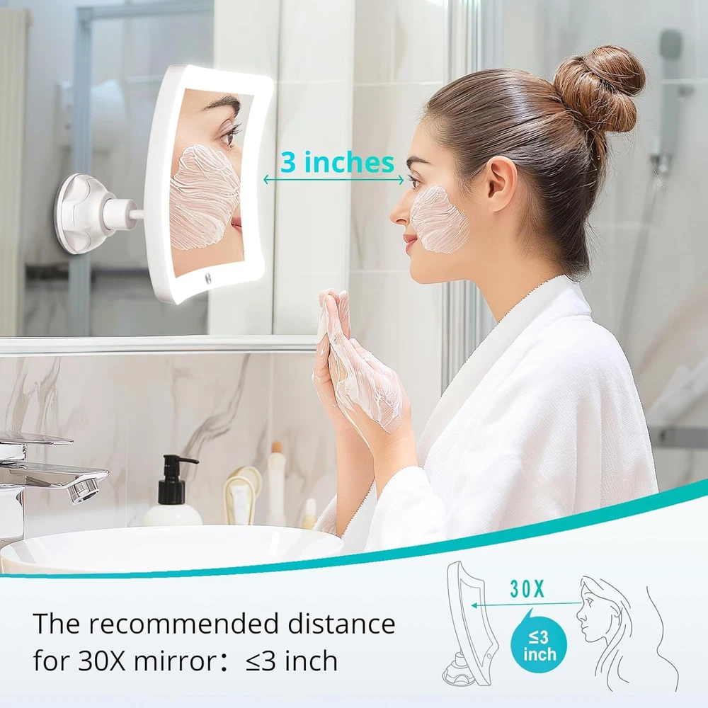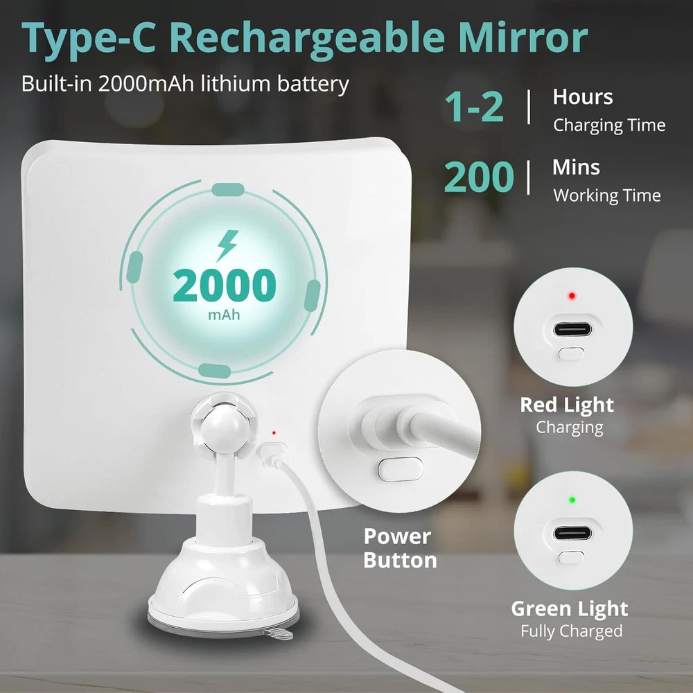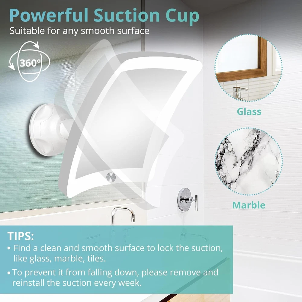 Fabuday Rechargeable Lighted Makeup Mirror 8.4"L x 7.1"W, White Product Details Brand: Fabuday Room Type: Bathroom Shape: Square Product Dimensions: 8.44"L x 7.1"W Frame Material: Acrylonitrile Butadiene Styrene (ABS) Style: Modern Mounting Type: Wall Mount Finish Type: Polished Surface Recommendation: Glass Special Feature: Rechargeable Battery, Magnifying Color: White Theme: Travel Specific Uses For Product: Makeup Number of Pieces: 1 Number of Items: 1 Material: Acrylonitrile Butadiene Styrene Frame Type: Framed Assembly Required: No Frame Color: White Magnification Maximum: 3E+1 Manufacturer: Fabuday Has Smart Features: No Frame Size: 7x8 inches Size: 8.4"L x 7.1"W Is Hanging: Yes Item Weight: 1.01 pounds Item model number: LS-027 Batteries: 1 Lithium Polymer batteries required. (included) UPGRADED 30X MIRROR - The 30x magnification is a huge improvement over the 20x mag, you are going to see everything on your face very well, ideal for detailed makeup application and skin care, is especially helpful for those with failing eyesight. NOTE: 30X is VERY STRONG, you need to be within 3 inches to get a clear undistorted image RECHARGEABLE TRAVEL MIRROR - The portable makeup mirror comes with a 2000mAh lithium battery and Type C charging cable, which can work for more than 2 hours after being fully charged, and you don’t have to worry about replacing batteries, it is a must-have for flawless makeup application on the go STEPLESS DIMMING - Fabuday light up mirror is equipped with 30 bright LED lights, the light illuminates the surface perfectly without glaring, helps you to clearly see how your delicate makeup will look in any lighting situations. Long press the button to set brightness and it can remember the last setting, ideal for your daily makeup and skin care EASY-LOCK SUCTION CUP - We have upgraded the suction cup to make it more powerful, which is very sturdy and easy to mount to smooth surface, is the perfect solution for your limited counter space. Remember to twist clockwise until you hear a "CLICK" sound to lock the suction cup. NOTE: To prevent it from falling down, please reattached the suction cup every 15 days 360°FREE ROTATION - The lighted mirror is designed with 360°swivel joint, can be adjusted freely and smoothly to obtain your best viewing angle for makeup IDEAL GIFT & 100% SATISFACTION SERVICE - Fabuday travel makeup mirror is the ideal gift for mother, wife, girlfriend on Christmas, Thanksgiving, Birthday, Valentine's Day or other special occasions. And if there have any problems with the product, just feel free to contact us, we will do our best to help you and offer you a satisfactory solution ASAP