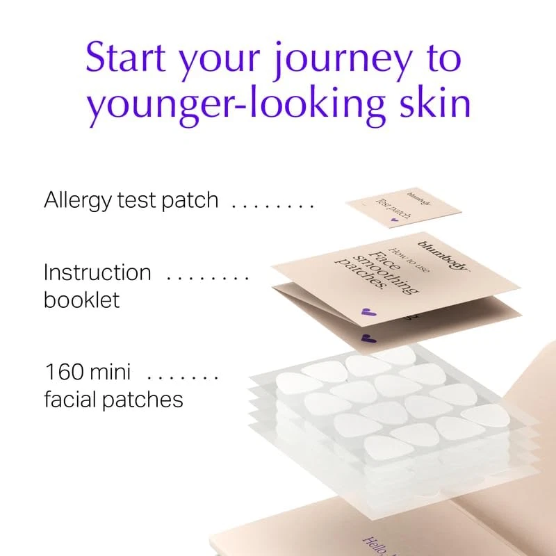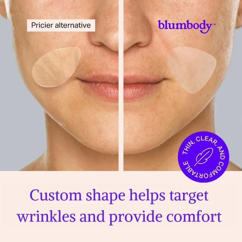 Smooth Facial Wrinkles: As we age, we produce less collagen and elastin, making it harder for our skin to bounce back. Our mini set anti wrinkle patches help reduce the appearance and include face wrinkle patches for frown lines, crow’s feet, smile lines, forehead wrinkles (11s and furrow lines). Professionally Designed, Tested, & Skin Friendly Patches: Treat yourself to these beauty patches made for you by our team dedicated to your skincare! Unlike other silicone wrinkle patches reusable and facetape alternatives, our face tape patches are non-transdermal and are friendly on all skin types after trying on test patch so won't harm or irritate the skin overnight. Non-invasive Natural Wrinkle Treatment: Still seeing what your options are for wrinkles aside from botox? Use our face patches as a botox alternative. Help to reverse the appearance of effects of sun damage, lifestyle, and aging with these comfortable, premium facial and around the eye patches for forehead wrinkles treatment. Comfortable & Easy to Apply for Visible Results: Unlike silicone face patches or other competitors, Blumbody face patches are thin and clear, making them comfortable, invisible on skin and easy stay on all night! Just apply to clean skin and forget that you are wearing them for amazing overnight results. World Class Customer Service: Apply our face wrinkle patches overnight or for at least 4 hours per day to start seeing results and help prevent appearance of deep wrinkle formation. We believe in our products - if something happens with your items, we will change it immediately. we are here to support you in your beauty journey. Product Description OVER 150,000 PATCHES SOLD TO DATE SMOOTHS WRINKLES OVERNIGHT: By gently compressing your skin, our patches create an occlusive environment that helps to pull moisture to the skin’s surface. Our fast-acting patches help to reduce the appearance of reduce heavily formed wrinkles in as little as 4 hours, and prevent new lines from forming. PROFESSIONAL MADE & DESIGNED TAPE: We use polyethylene film patch tape with an extra secure adhesive. Our tape is lightweight and durable, and doesn’t pinch or pull when removed. MORE COVERAGE: No matter which wrinkles you’re worried about, our mini triangular patches fit anywhere that fine lines appear. From crow’s feet to chin lines, we’ve got you covered! A Great Alternative to Cosmetic Injections & Botox As women, especially after the age of 30, we start to be concerned about the appearance of our skin and search for the perfect combination that will turn back the clock. Blumbody Face Smoothing Patches are designed to prevent and attenuate face wrinkles caused by sun damage, aging, facial expressions, or city pollution. Reusable up to 2 times and targeting all the face areas, Blumbody Face Smoothing Patches are a simple method to reverse deep expression lines without dangers of injections. Avoid Extreme Facial Expressions The facial smoothing patches work best when you are prone to frown, by keeping the skin stretched. Especially when you work at your computer, read or watch TV. Use them as a trusty help that will stop your lines from progressing You won’t look as annoyed as you used to With consistent use (3 - 4 months), the angry wrinkle between your brows will start to fade away and people will stop telling you that you look like you're "worrying all the time" or you're mad. A Temporary Fix See instant results after just 30 minutes if you a need a temporary fix for pictures or a meeting where you want to remove wrinkles for a short period of time. With consistent use the effects will start to become permanent. BEFORE/AFTER BEFORE/AFTER BEFORE/AFTER - STOP THE "WORRYING" BEFORE/AFTER - A TEMPORARY INSTANT FIX