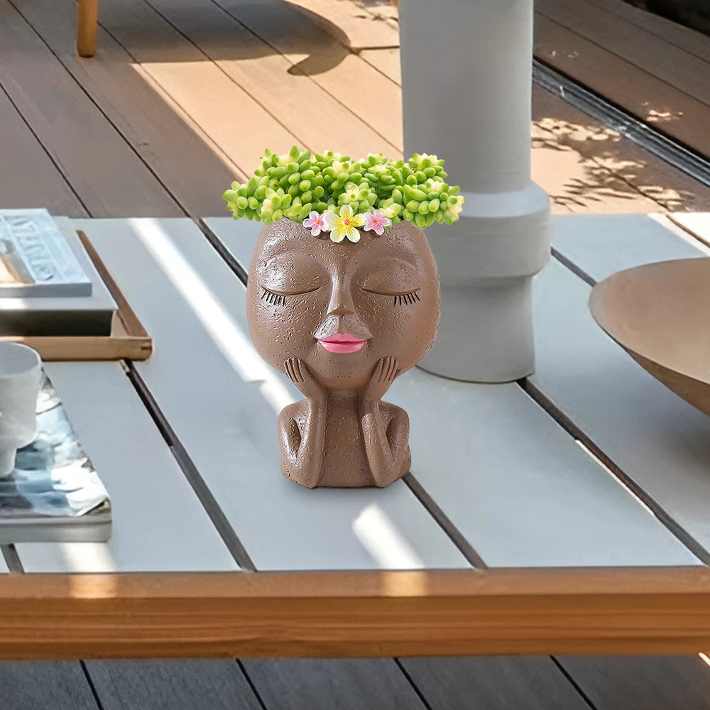 Face Head Flower Plant Resin Pot Succulent Planter Garden Indoor Outdoor Decor Bullet Points: Reliable Material: Fashioned from resin material, our Face Flower Pot can withstand any outdoor weather conditions without fading. Its smooth surfaces without burrs also makes it easy to clean. Tipping Prevention Wonder: Embrace the charm of your bloomings with our 139 cm Face Flower Pot, ingeniously crafted to minimize tipping risks, ensuring a stable and secure display. Delightfully Charming: Bring a touch of adorable to your decor with this face flower pot. Its charming design showcases unique eyes closed, flushed cheeks, and hands dragging cheek gestures, accented by a delightful flower headdress. Unconventional Creativity: With its unique design, our Face Flower Pot is sure to be a opening remarks. Add character to your decor by planting succulents, grass, or flowers that visually play off the hair-like growth. Widely Applicable: With its charming design, our Face Flower Pot adds a touch of personality to any setting, making it the perfect addition to homes, gardens, balconies, coffee and flower shops and farms. Introducing the Head Flower Pot - a unique DIY option for adding charm to any environment. Designed to withstand various outdoor weather conditions, this pot minimizes the risk of tipping over. Its eyes closed, cheeks flushed, and hands dragging cheek gestures make it a fun and quirky addition to any garden. Specification: Material: resin Product size: about 13x9cm/5.12x3.54 inches Weight: 159g Color: brown, white Packing List: Face Flower Pot*1pcs Note: Due to different lighting and screen settings, the item color may be slightly different from the picture. Due to different manual measurements, please allow a 1-2cm difference in size. 1.You can make a Credit payment via Paypal.Paypal will let you use MasterCard,Visa to pay. 2.Payment should be completed within 5 days after auction closed, or unpaid dispute will be filed for an closing auction.An unpaid case will be filled after 4 days. ● We strive for 100% customer satisfaction ! ● Positive Feedback is very important to us. ● We hope that you contact us immediately BEFORE you give us neutral or negative feedback, so that we can satisfactorily address your concerns. ● We promise to offer the lowest price and high quality produce. Dear buyers : ● Welcome to my store ! ● Your satisfaction is our top goal,we appreciate your patronizing. ● If you have any questions, please contact us before leave negative or neutral feedback, we will try our best to solve the issue to your satisfaction, thanks ! ● If you are satisfied with our service, please rate the details of the transaction (Detailed Seller Ratings) on eBay. ● Please always talk to us via ebay Message. ● We appreciate your business and look forward to growing our e-Bay sales with satisfied customers.