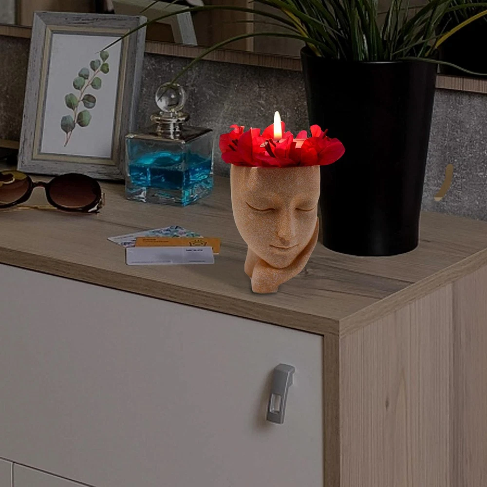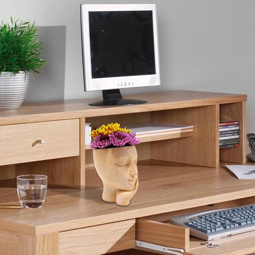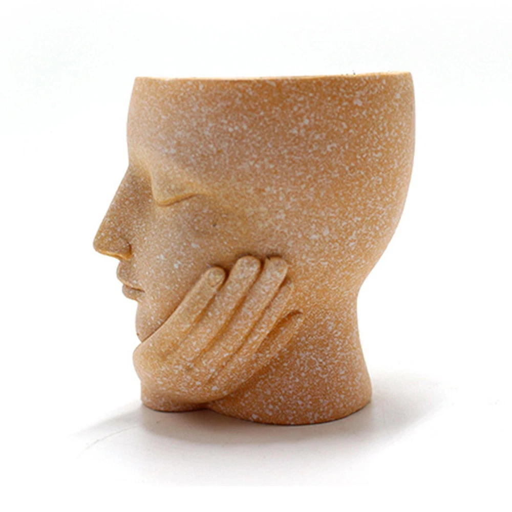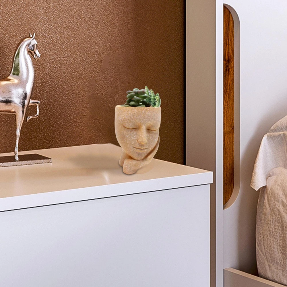 Bullet Points: Durable Construction: Face planter are made of high-quality resin, which is different from ceramic textures, resin textures planter is more durable and sturdy. Drainage Hole Design: This pot heads for plants is with Drainage Hole inside the tree stump. The drainage hole opens at the Bottom of The Pots To Keep Your Plants Grow And Breath In Health. Adorable Lady Style: Head Planter makes the whole home full of strong artistic style. With a super cute lady shape with eyes closed, it is very small and cute. It is perfect as a home decor. Versatile In Use: A simple and sleek contemporary petite Beautifully glazed with an elegant, attractive color plant pot.Gardening props, suitable for decorative gardening, desk Best Gift: Creative face planters pots head is the best gift to kids, parents, lovers, and friends, shows the passion for life for a touch of clean, modern style in your living space. Features: High-quality material: made of high-quality resin. Flower pots are light weight and durable. Function:Decorative succulent plant pot with drainage holes to drain excess water Scope of application: Perfect for succulents, cactus plants, small plants, and be used as candle holders Material: resin Size: 6.5*8*9CM\2.55x3.14x3.54in Style: as shown in the picture Product List Girl's face flower pot *1