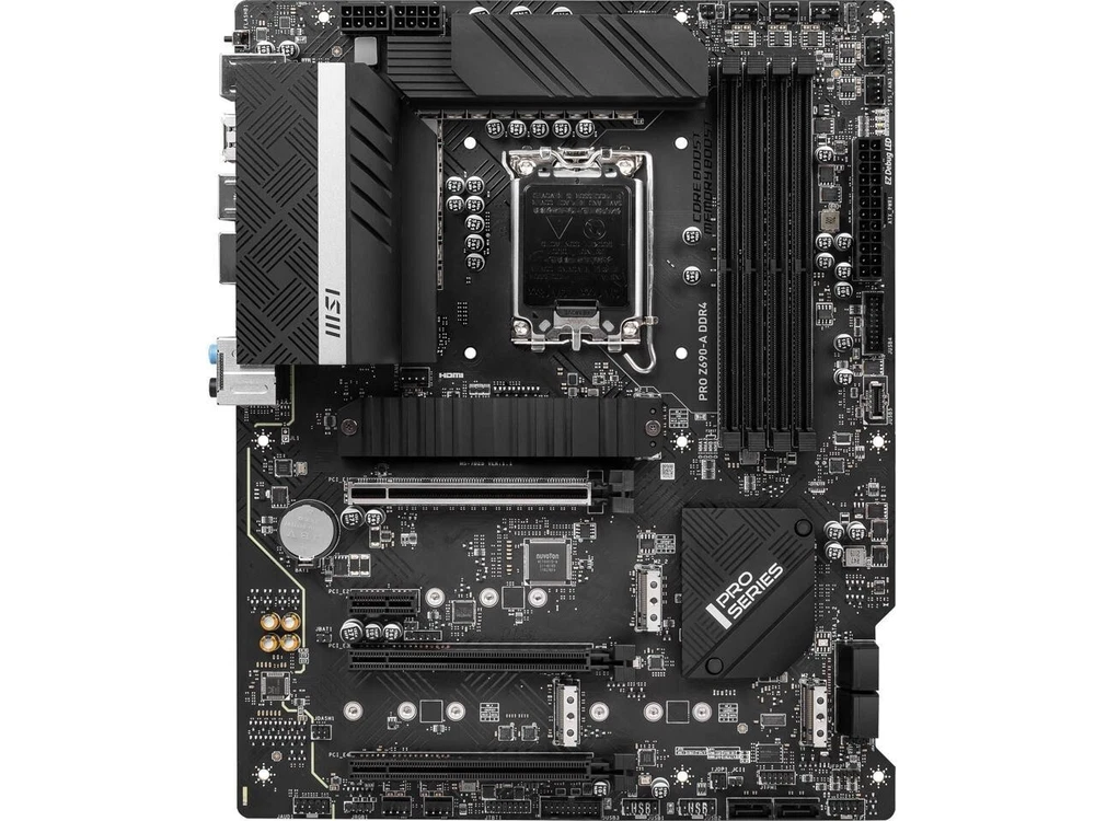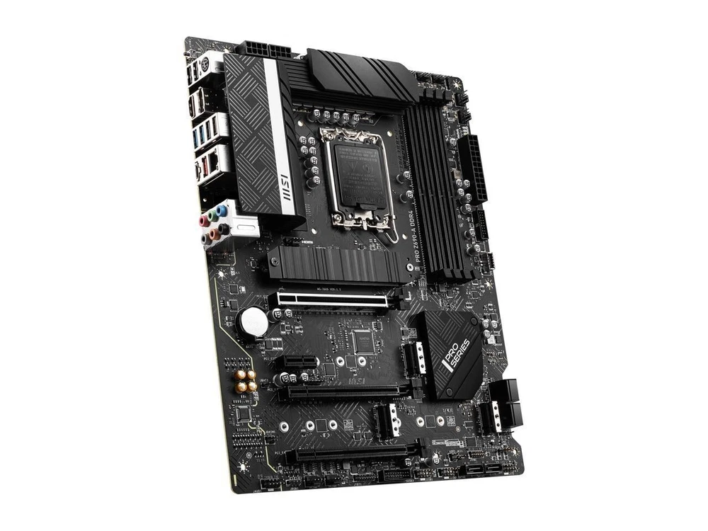 MSI factory refurbished unit, 120 days MSI direct warranty, comes with SATA cable, I/O shield only. Model Brand MSI Model PRO Z690-A DDR4 Supported CPU CPU Socket Type LGA 1700 * Dedicated LGA1700 mounting bracket is required. CPU Type Supports 13th / 12th Gen Intel Core, Pentium Gold, Celeron Processors* May require a BIOS update to boot the 13th gen Intel® Core™ desktop processors. * Please go to msi.com to get the newest support status as new processors are released. Chipsets Chipset Intel Z690 Onboard Video Onboard Video Chipset Supported only by CPU with integrated graphic Memory Number of Memory Slots 4x288pin (DDR4) Memory Standard DDR4 1R 3200 / 2933 / 2666 / 2133 (by JEDEC & POR) Max overclocking frequency: 1DPC 1R Max speed up to 5200+ 1DPC 2R Max speed up to 4800+ 2DPC 1R Max speed up to 4400+ 2DPC 2R Max speed up to 4000+ Maximum Memory Supported 128GB Channel Supported Dual Channel Expansion Slots PCI Express 5.0 x16 1 x PCI Express 5.0 x16 * Actual support may vary by CPU. PCI Express 3.0 x16 2 x PCI Express 3.0 x16 * Supports up to PCIe 3.0 x4 & 3.0 x1. PCI Express x1 1 x PCI Express 3.0 x1 Storage Devices SATA 6Gb/s 6 x SATA 6Gb/s M.2 4 x M.2 slots (Key M) M2_1 slot (from CPU) Supports PCIe 4.0 x4 Supports 2242/ 2260/ 2280/ 22110 storage devices M2_2 slot (from Z690 chipset) Supports PCIe 4.0 x4 Supports 2242/ 2260/ 2280 storage devices M2_3 slot (from Z690 chipset) Supports PCIe 3.0 x4 Supports SATA 6Gb/s Supports 2242/ 2260/ 2280 storage devices M2_4 slot (from Z690 chipset) Supports PCIe 4.0 x4 Supports SATA 6Gb/s Supports 2242/ 2260/ 2280 storage devices Intel Optane Ready Intel Optane Memory Ready for M.2 slots that are from Z690 Chipset SATA RAID 0/1/5/10 Onboard Audio Audio Chipset Realtek ALC897 Audio Channels 7.1 Channels Onboard LAN LAN Chipset Intel I225-V Max LAN Speed 2.5Gbps Rear Panel Ports Back I/O Ports 1 x DisplayPort 1 x HDMI 1 x Flash BIOS Button 1 x LAN (RJ45) 6 x Audio Jacks 1 x PS/2 Keyboard/Mouse Combo 1 x USB 3.2 Gen 2x2 Type-C 1 x USB 3.2 Gen 2 Type-A 2 x USB 3.2 Gen 1 Type-A 4 x USB 2.0/1.1 Internal I/O Connectors Onboard USB 1 x USB 3.2 Gen 2 10Gbps Type-C port 2 x USB 3.2 Gen 1 5Gbps connectors (supports additional 4 USB 3.2 Gen 1 5Gbps ports) 2 x USB 2.0 connectors (supports additional 4 USB 2.0 ports) Other Connectors 1 x 4-pin CPU fan connector 1 x 4-pin water-pump fan connector 6 x 4-pin system fan connectors 1 x Front panel audio connector 2 x System panel connectors 1 x Chassis Intrusion connector 1 x Clear CMOS jumper 1 x TPM module connector 1 x Tuning controller connector 1 x TBT connector (Supports RTD3) 1 x 4-pin RGB LED connector 2 x 3-pin RAINBOW LED connectors 4 x EZ Debug LED Physical Spec Form Factor ATX LED Lighting RGB Dimensions (W x L) 12.0" x 9.6" Power Pin 1 x 24-pin ATX main power connector 2 x 8-pin ATX 12V power connector Windows Compatibility Windows 11 Supported Features Features Supports 12th Gen Intel Core, Pentium Gold and Celeron processors for LGA 1700 socket Supports DDR4 Memory, up to 5200+(OC) MHz Lightning Fast Experience: PCIe 5.0 slots, Lightning Gen4 x4 M.2, USB 3.2 Gen 2x2 Premium Thermal Solution: Extended Heatsink Design, MOSFET thermal pads rated for 7W/mk and M.2 Shield Frozr are built for high performance system and non-stop works 2.5G LAN: Upgraded network solution for professional and multimedia use. Delivers a secure, stable and fast network connection Intel Turbo USB 3.2 Gen 2: Powered by Intel USB 3.2 Gen2 controller, Turbo USB ensures an uninterrupted connection with more stability and fastest USB speeds Audio Boost: Reward your ears with studio grade sound quality High Quality PCB: 6-layer PCB made by 2oz thickened copper and server grade level material Multi-GPU: With Steel armor PCI-E slots. Supports AMD Crossfire
