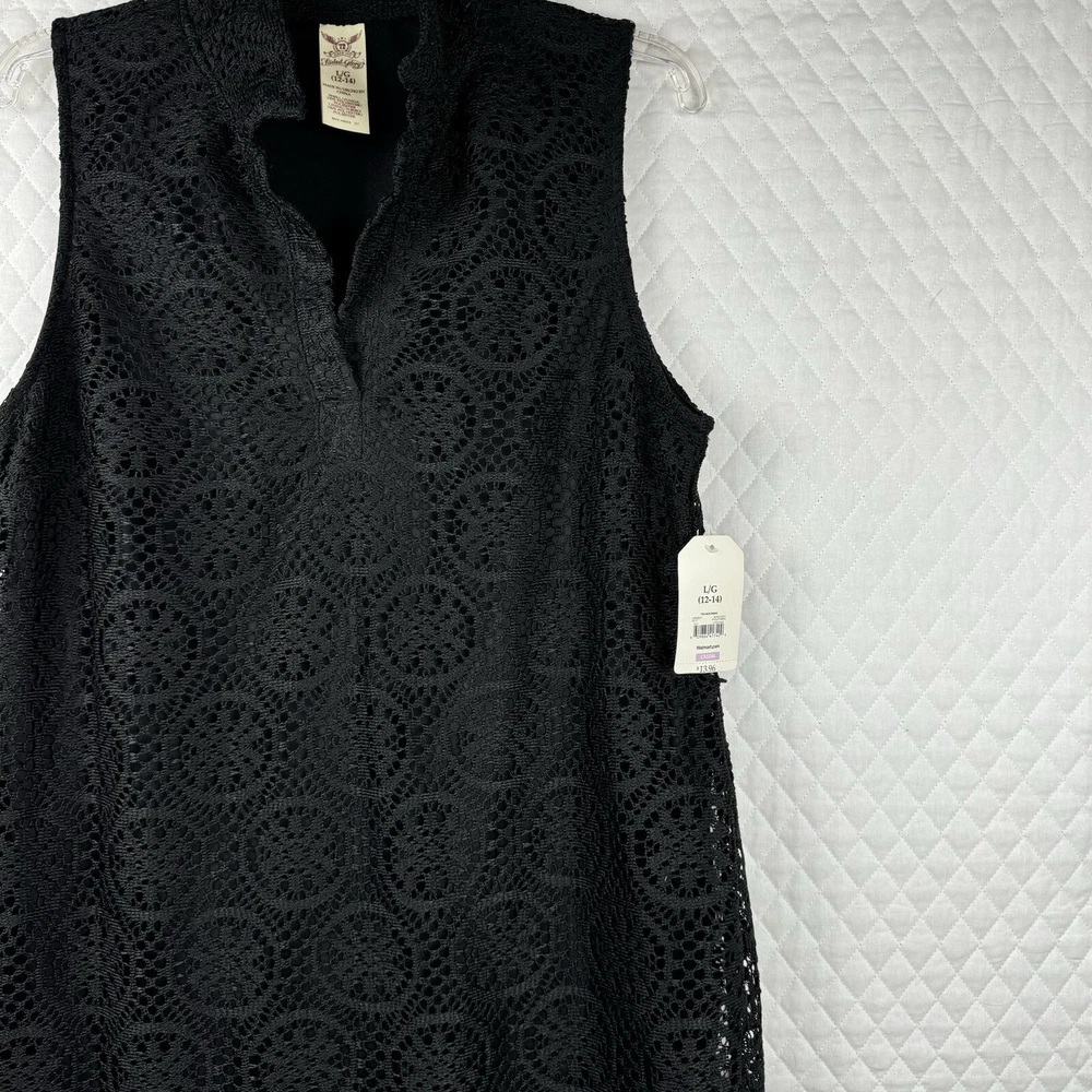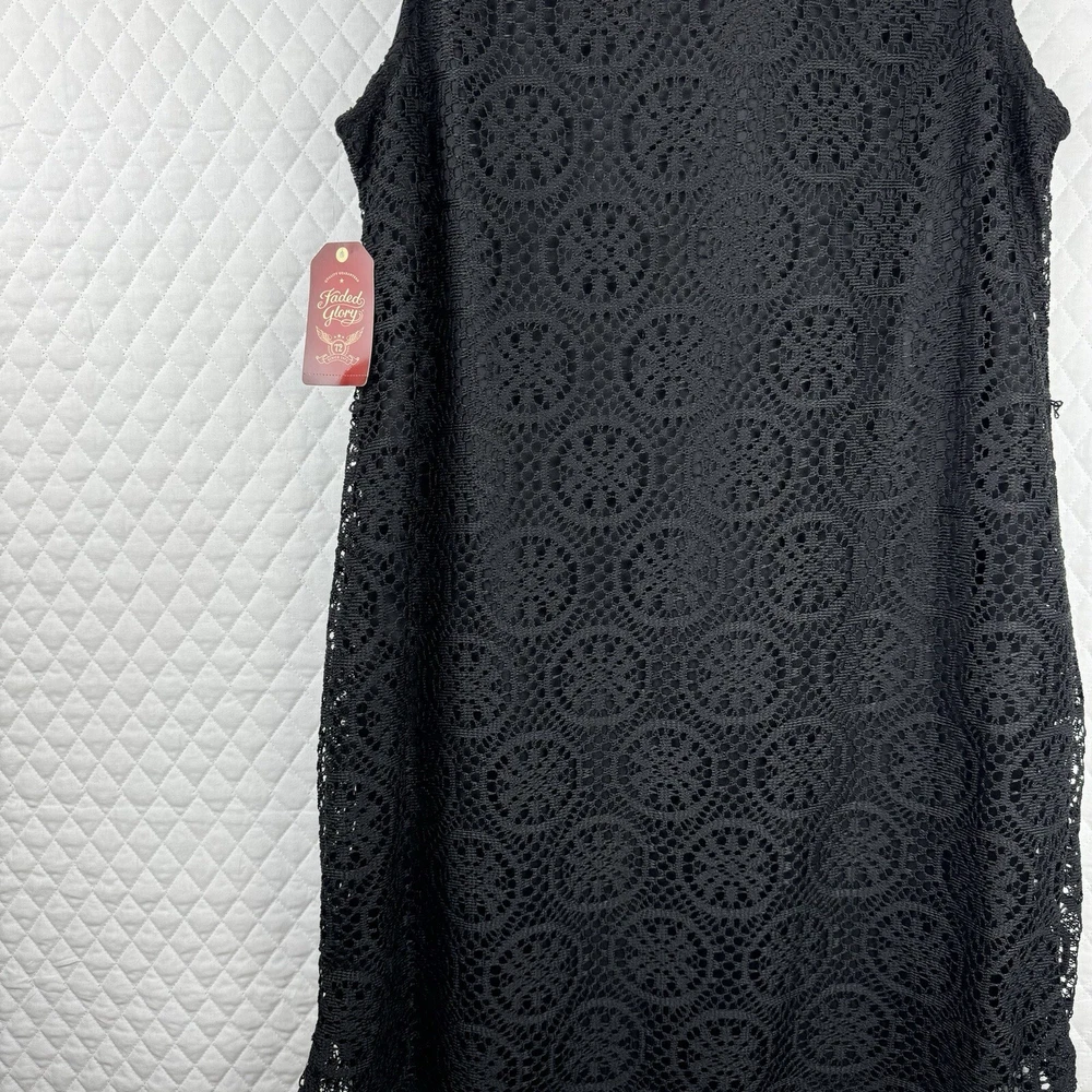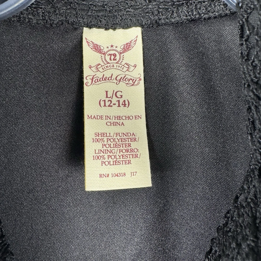Embrace your inner goddess with this stunning black lace dress from Faded Glory. With a crochet and layered accent, this knee-length dress is perfect for any occasion, whether it be a wedding, party, or casual outing. The collared neckline and pullover closure add a touch of elegance to this bodycon dress, while the sleeveless design and no-sleeves sleeve type provide a comfortable fit for warmer seasons. Made from polyester and machine washable, this dress is easy to care for and perfect for those who enjoy vintage-inspired clothing. The dress is lined and has a slimming effect, making it ideal for those who desire a sexy and comfortable look. Available in size L 12/14, this dress is suitable for anyone who wants to channel their inner witch and make a statement. Length = 38" Width = 20" (arm pit to arm pit) All measurements are taken flat and are approximate. Clothing items are steamed and/or washed prior to shipping Goth, witchy, dark fairy, crochet, lace, little black dress, event, work, office, business, neru neckline, dark academia, alternative