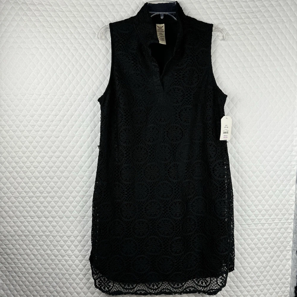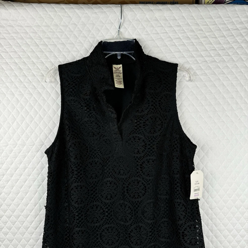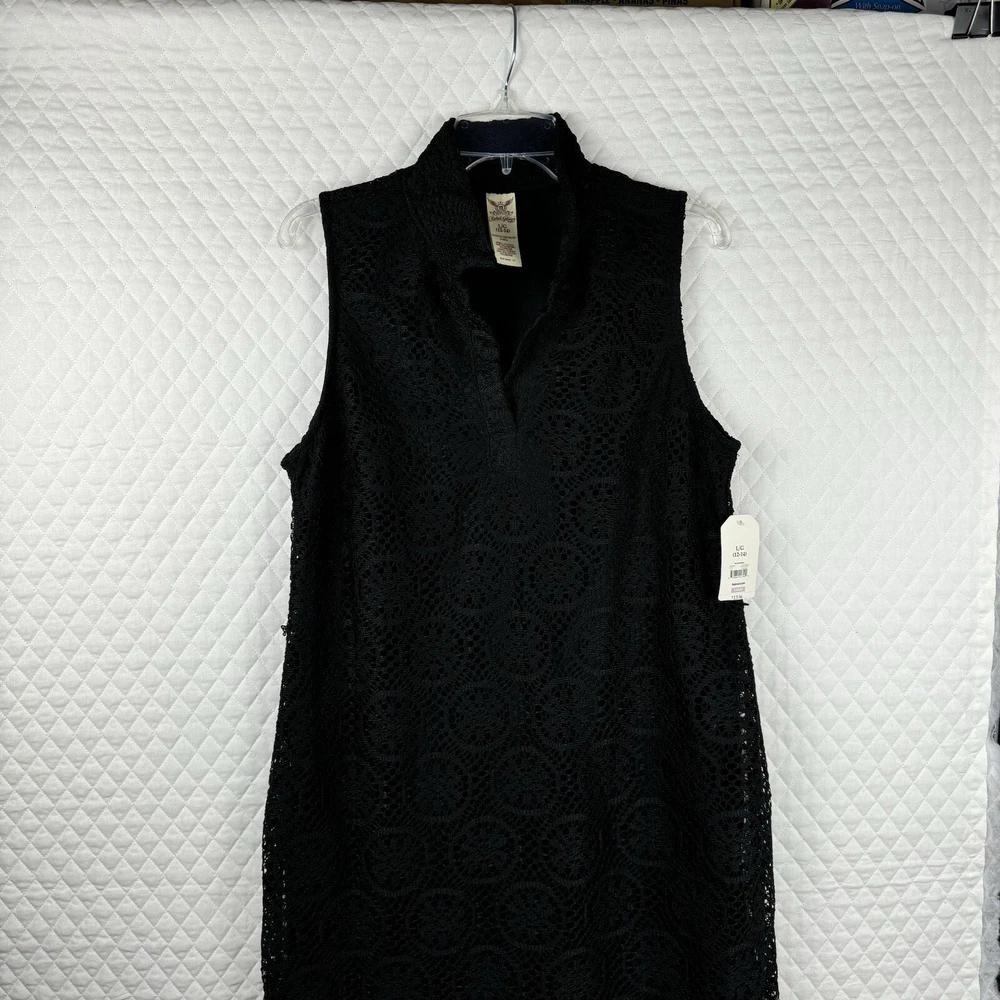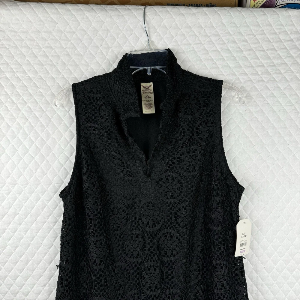Embrace your inner goddess with this stunning black lace dress from Faded Glory. With a crochet and layered accent, this knee-length dress is perfect for any occasion, whether it be a wedding, party, or casual outing. The collared neckline and pullover closure add a touch of elegance to this bodycon dress, while the sleeveless design and no-sleeves sleeve type provide a comfortable fit for warmer seasons. Made from polyester and machine washable, this dress is easy to care for and perfect for those who enjoy vintage-inspired clothing. The dress is lined and has a slimming effect, making it ideal for those who desire a sexy and comfortable look. Available in size L 12/14, this dress is suitable for anyone who wants to channel their inner witch and make a statement. Length = 38" Width = 20" (arm pit to arm pit) All measurements are taken flat and are approximate. Clothing items are steamed and/or washed prior to shipping Goth, witchy, dark fairy, crochet, lace, little black dress, event, work, office, business, neru neckline, dark academia, alternative