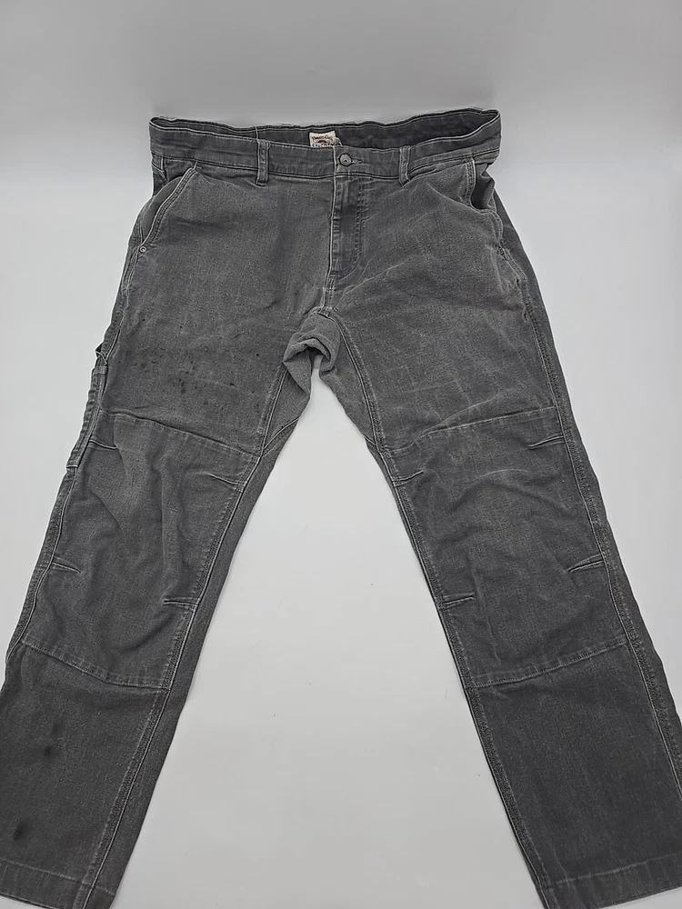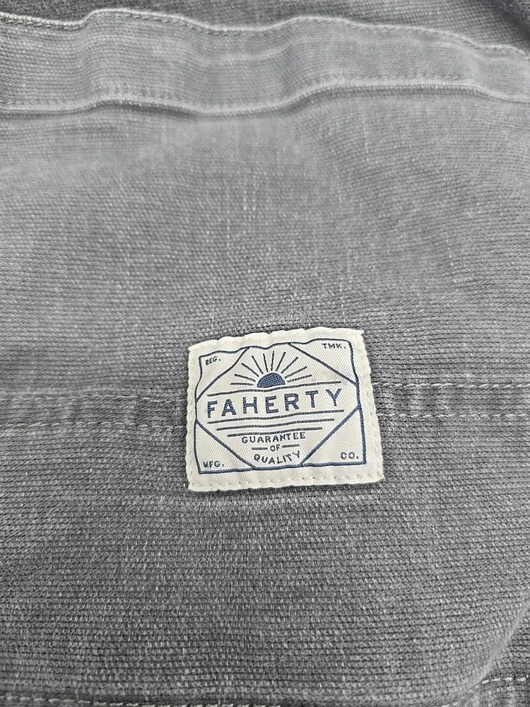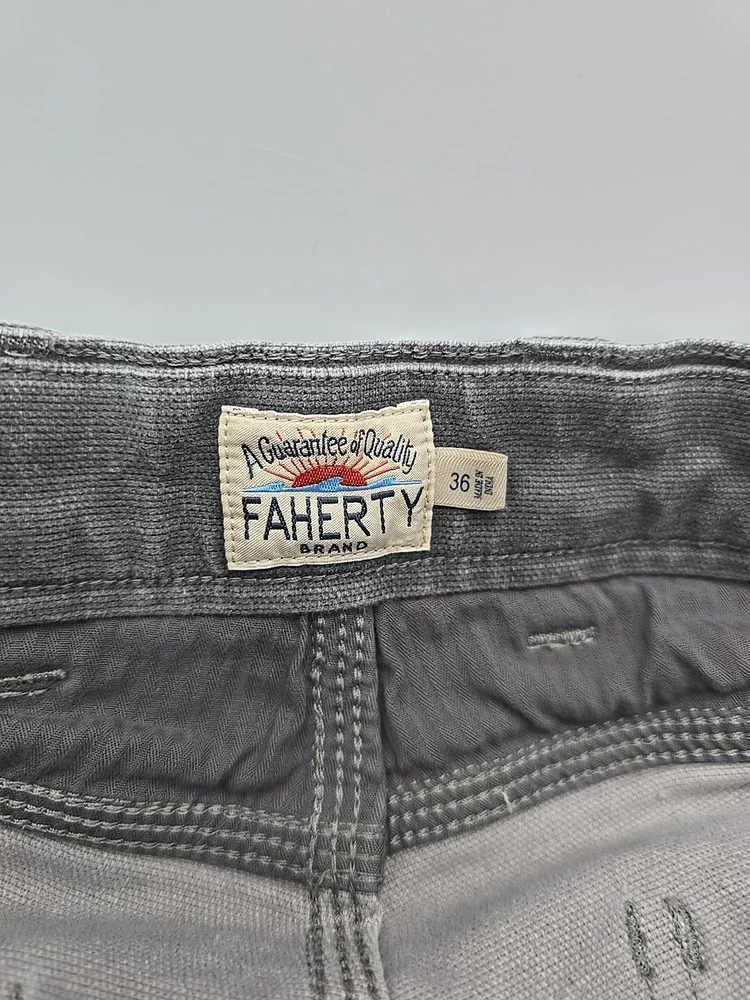 Elevate your casual style with these Faherty chino pants in size 36. The soft cotton blend twill fabric features a stretch for comfort and a solid pattern in a beautiful gray color. The pants have a flat front, straight leg style, and a 25-inch inseam, making them perfect for a casual occasion or a day at the beach. The pants also feature a 5-pocket design, including a zip and button closure, and are machine washable for easy care. These pants are ideal for men who appreciate quality and style without sacrificing comfort. Check Pictures for flaws and measurements