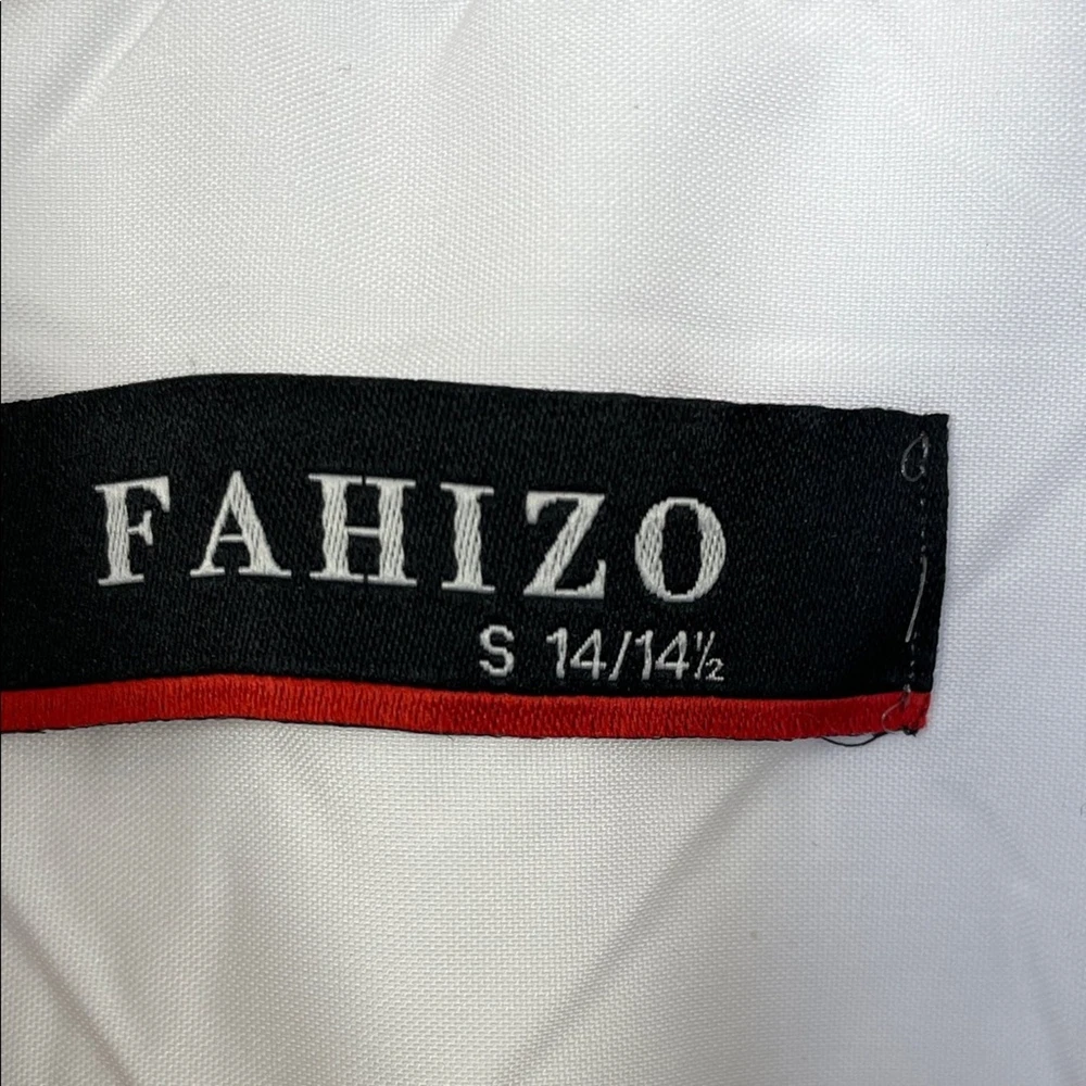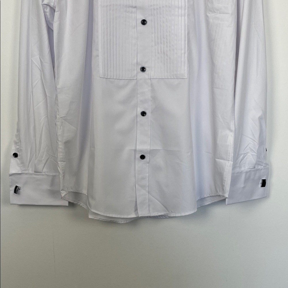 Fahizo Wing Collar Tuxedo French Sleeve Cutt Men's Classic White Dress Shirt. FEATURES: Flaws: None visible, pre-loved Good Condition, See Measurements Below Style Profile: Elevate your wardrobe with this pleated front classic white dress shirt with a lapel pin . Perfect for any formal occasion. Approximate measurement Chest (pit-to-pit, laid flat): Small (19") Medium (21") Length: Small (28") Medium (29") 64-7-0042001302026