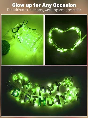 Return Policy Fast Delivery Trusted seller Green Fairy Lights Battery Operated,6-Pack LED String Lights Waterproof Silver Wire 7ft 20 LED Light for St. Patrick's Day,DIY Wedding Party Bedroom Patio Christmas Product Description VERSATILE STRING LIGHTS: Our battery-operated fairy lights create a warm and inviting atmosp for weddings, parties, and DIY craft projects, including mason jars, vases, and table settings.Our mini fairy lights are powered by CR2032 batteries and can last up to 72 hours,it’s belongs lasting-long lights, If the light off ,change the battary it can be Bright as usual, making them perfect for outdoor or indoor use. DAZZLING LED FAIRY LIGHTS: Featuring tiny LED lights, our led wire lights are an elegant addition to any event or décor. The LED bulbs produce no heat and are environmentally friendly. The silver wire starry moon lights are low power and insulates heat, remain safe to the touch. No glare, the soft warm lights in order to protect your eyes WATERPROOF MINI BATTERY LIGHTS: The fairy moon string lights is IP65 waterproof and can be used indoor and outdoor without any worry of moisture or weather damage or short circuit. Only the battery string lights is waterproof, the battery pack is not waterproof WIDELY USED SMALL LIGHTS: Flexible and thin but sturdily built, the fairy lights string can be easily bent, 360 degrees sparkle with beautiful effect, perfect to use as wedding centerpiece, or decorate party,Halloween,Thanksgiving,Christmas, Happy New Year,Easter,Valentine's Day, Mother's Day, Father's Day decorations shop, restaurant and kid's room etc 100% WARRANTY: We promise to refund unconditionally within 30 days. If t is any quality problem, please contact us. We will deal with it within 24 hours Shipping Returns Payment Shipping Shipping is FREE to all addresses other than APO/PO boxes in the lower 48 states. All our stock ships from US-based warehouses. Shipped via USPS or UPS (depending on location and package weight) Unless stated otherwise, all orders will ship within 24-72 hours of your payment being processed. Check our feedback to see the great reviews of FAST shipping we offer. Returns Seller does not accept returns Payment We currently accept payment via eBay managed payments only. Once payment is cleared, we will dispatch your shipment within 1-3 business days. Please refer to the "Shipping" tab for more information regarding shipping speed to your destination.