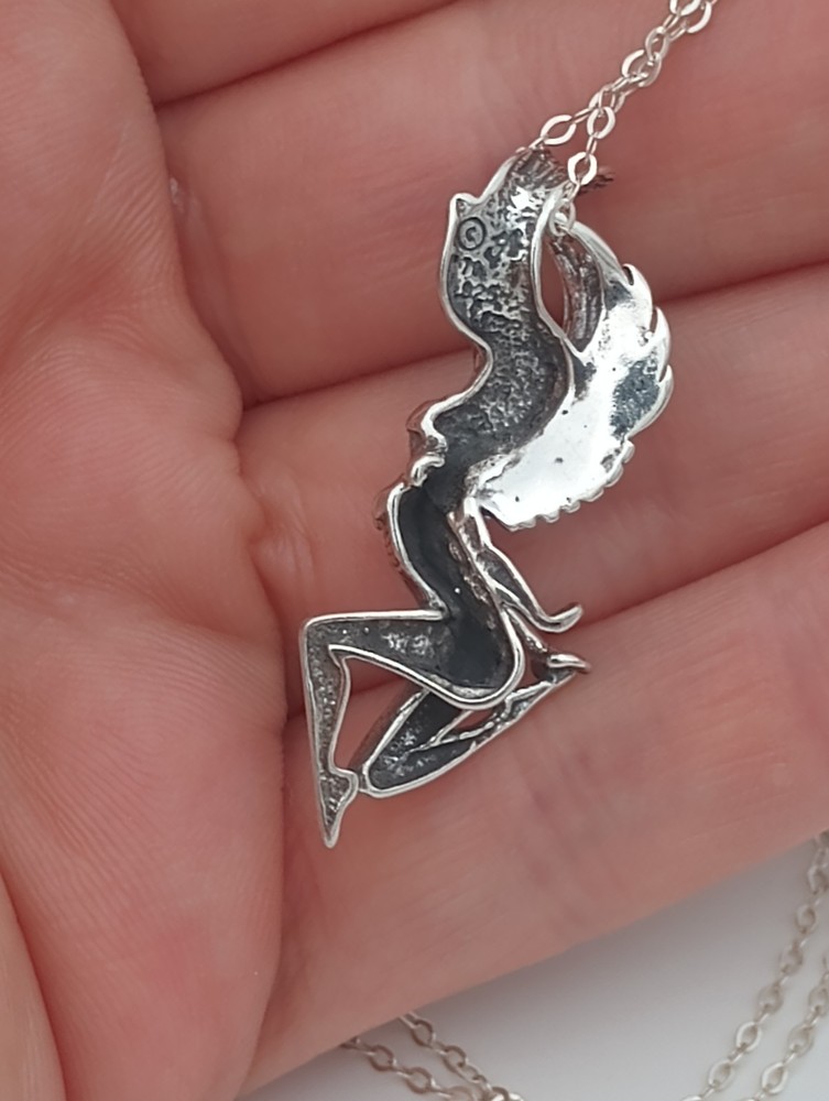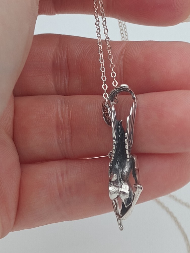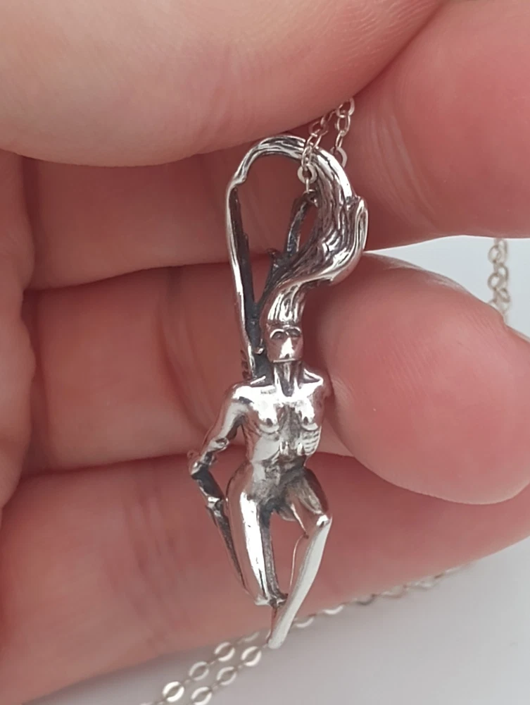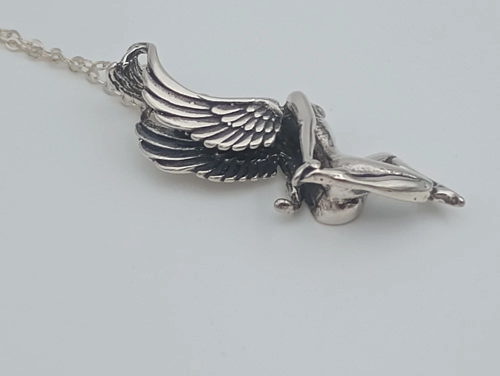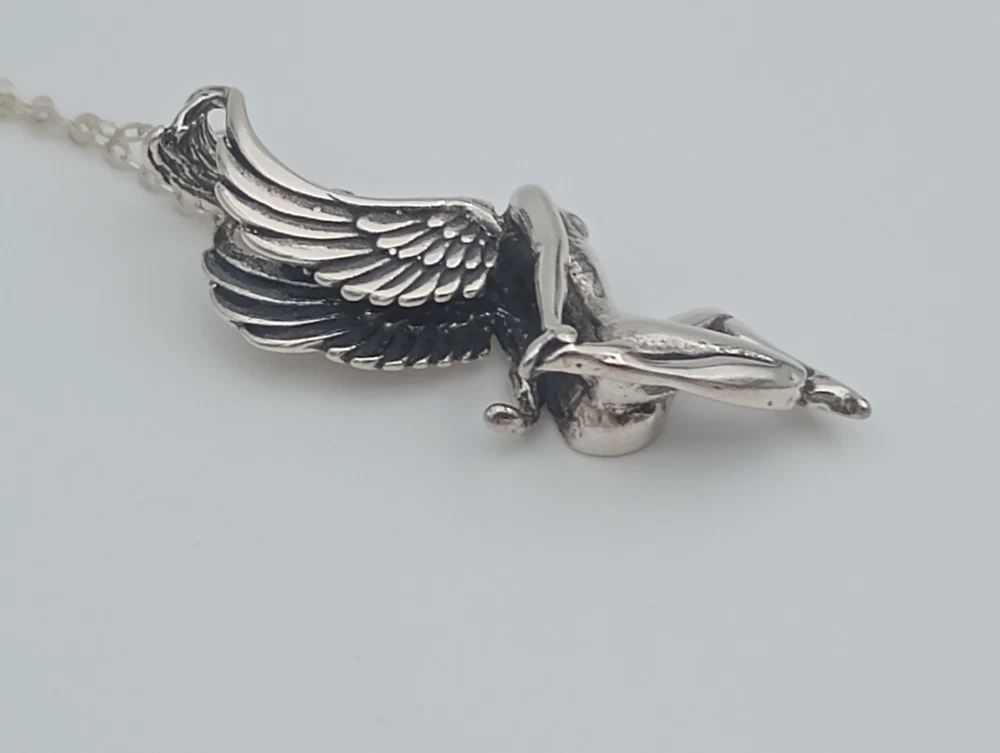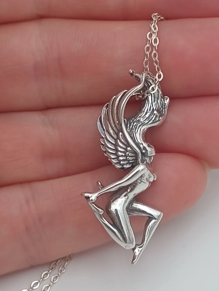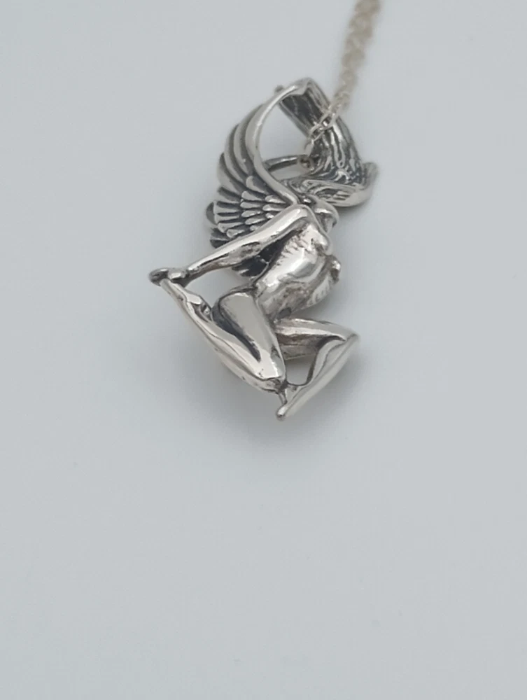 The fairy necklace features a nude fairy pendant made of sterling silver, with a metal purity of 925. The elegant design of the pendant showcases intricate details of a fairy, making it a unique and whimsical accessory. Perfect for those who appreciate fantasy and mythology in their jewelry choices, this necklace adds a touch of magic and charm to any outfit. Hello; you can request a 16" or 18" chain. Pendant is made in USA/chain is made in Italy You will receive what is shown in the photos.