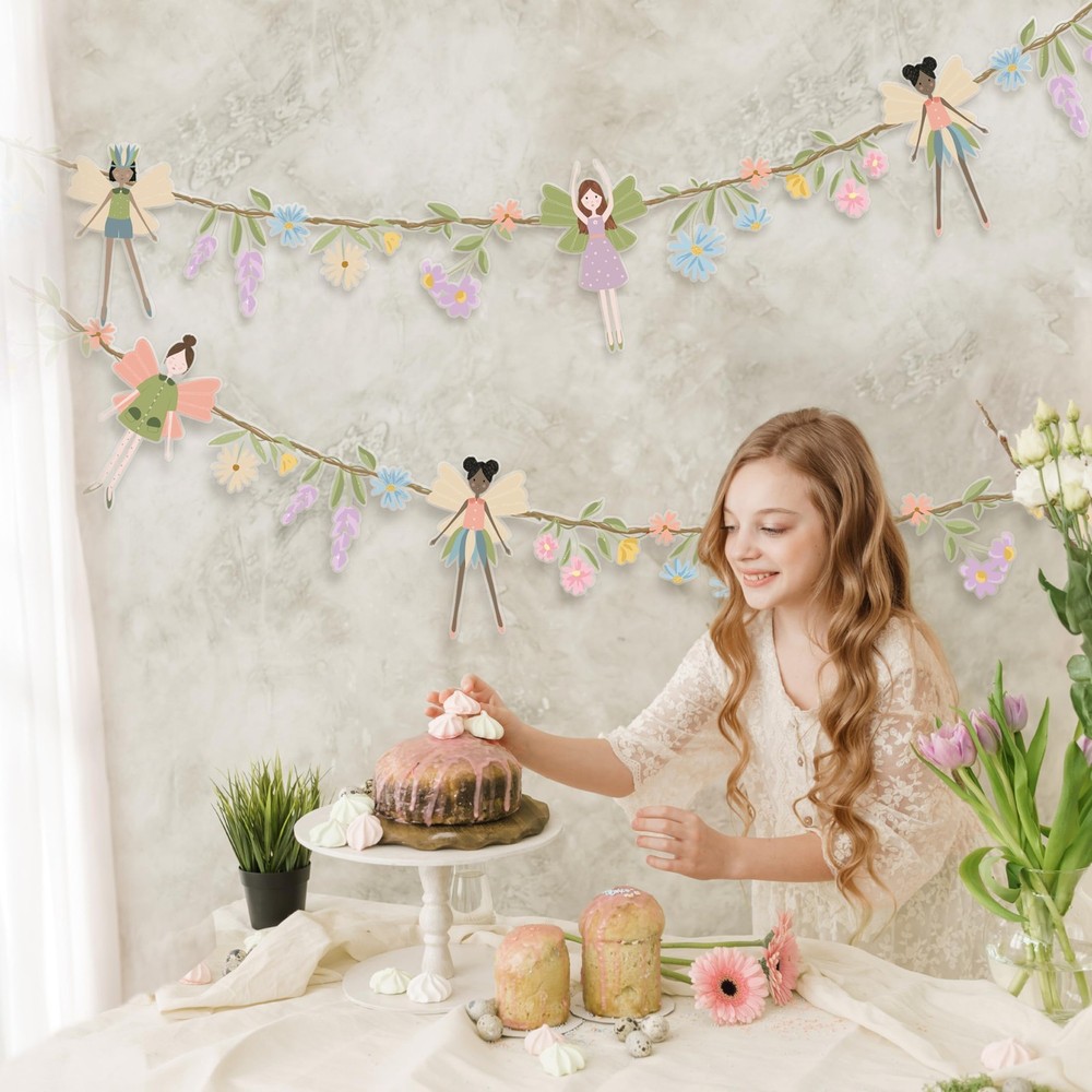 Transform any event into a magical celebration with this enchanting fairy garland set, designed to bring whimsical charm to your fairy birthday party decorations and elegant garden party decorations. Featuring delicate fairies, flowers, and pastel colors, these banners are perfect as fairy party decorations, tea party decorations, or dreamy fairy banner displays for birthdays, showers, and more. Whether you’re planning a fairy garden birthday party, a woodland celebration, or an afternoon garden tea party, this set creates unforgettable memories with every detail. Beautifully designed, these fairy decorations work as both centerpiece accents and versatile fairy hanging decor. Use them as a backdrop for photos, table runners, or ceiling swags. Their playful yet refined look makes them perfect for fairy birthday decorations, fairy birthday banners, or kid party decoration garden theme events. From fairy decor party ideas to fairytale party decorations, these garlands provide effortless style for any occasion. Ideal for multiple events, use as baby shower decorations, bridal shower banners, or girl birthday decorations. The versatile design complements garden theme party decorations, fairytale décor, birthday garlands, and even enchanted forest classroom decor. Whether for a fairy first birthday, whimsical party décor, or a springtime garden birthday decoration, these banners adapt beautifully to your theme. Crafted with quality and care, each piece is lightweight yet durable, ensuring easy hanging and reusability. Perfect for party decorations, garland decorations, or seasonal garden party décor, these fairy garlands can be stored and enjoyed again for future fairy garden party decorations or tea party decorations for women and girls. Complete your fairy theme with this must-have set that elevates any birthday decoration, fairy baby shower, or fairy woodland birthday decoration into a fairytale come true. Package: Includes 2 pastel fairy garlands, each measuring 5.25 feet in length. Decorated with whimsical fairies, flowers, and soft colors, this set is perfect for fairy birthday party decorations, garden party decorations, and charming fairy banner displays. Made from lightweight plastic for easy hanging. Exclusivity: Bring fairytale magic to your celebration with exclusive fairy party decorations featuring delicate details of flowers and fairies. This unique fairy hanging decor blends beautifully with garden party décor, tea party decorations, and fairy birthday banner setups for girls. Versatile Themed Decor: Ideal for fairy birthday decorations, garden theme party decorations, fairy baby shower decorations, or fairytale party decorations. Use as bridal shower banners, girls’ tea party decorations, or versatile birthday garlands to transform any space into a magical wonderland. Guideline: No DIY! Each fairy garland decor birthday set comes pre-strung and ready to hang. Simply display on walls, mantels, tables, or entryways. Perfect for indoor/outdoor use, these banners make setting up your fairy party décor quick and stress-free. Durable and Eye-Catching: Crafted from durable plastic with vivid printing, these fairy decorations are sturdy enough for repeated use. Keep them for future garden birthday decorations, fairy first birthday parties, enchanted forest birthday decorations, or whimsical party décor year-round.