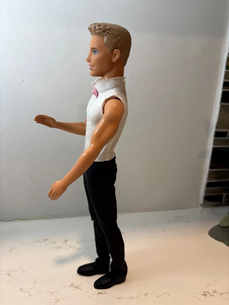 Step into a world of fantasy with the Fairytale Ken Groom Doll, a charming companion from the 2012 Fairytale Barbie product line. Dressed in a pink and white groom shirt and pants, Ken looks dashing for any wedding occasion. His light complexion, pink eyes, and snowy white hair create a look that's both classic and timeless. This 12-inch doll is designed for collectors and children over the age of 3, making it a versatile addition to any toy collection. The set includes Ken's shoes, completing his elegant ensemble. Crafted by Mattel, this original piece from the 2010-2019 era offers a touch of magic and romance for Ken enthusiasts and Barbie collectors alike.