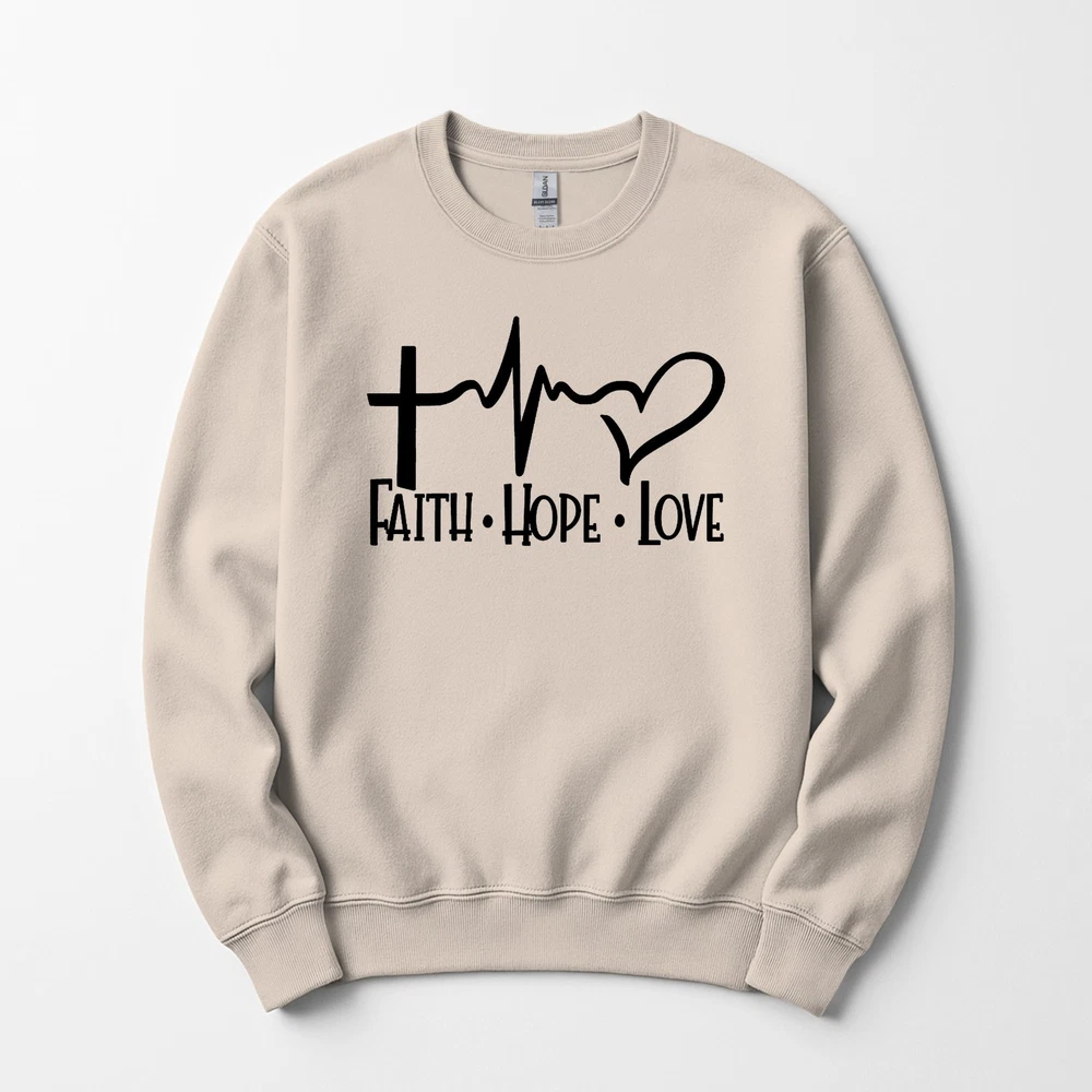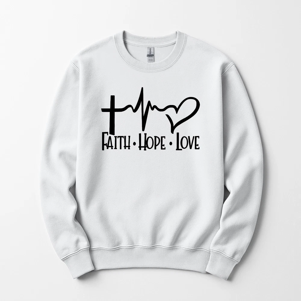 Faith Hope Love Heartbeat Sweatshirt SIZE Runs True To Size Please Refer To The Size Guide In The Pictures FEATURES 50% cotton and 50% polyester Goes with any outfit Please pick size and color. Thanks so much for looking!