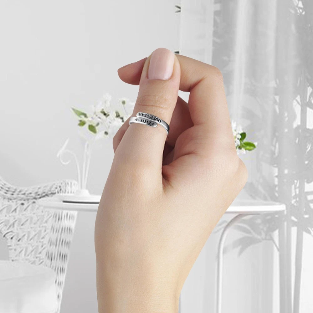Faith Over Fear Ring 925 Sterling Silver Inspirational Adjustable Rings Product Description Description: Made of 925 sterling silver material, which makes the silver ring more brilliant, not easy to darken or tarnish, with fine details. The open design makes the anxiety ring slightly adjustable to meet the needs of most women and men. This men's and women's sterling silver ring can be adjusted in size from a size 6 to a size 8.5. It can be used not only as a thumb ring, but also as a pinky ring. Faith Ring features Faith Hope Love engraved inside the band and adorned with a heart for a daily reminder of God's love. Features: Material: 925 Sterling Silver Size: 3*0.4cm/1.18*0.15inch Adjustable opening List: 1*Faith Over Fear Ring Payment 1.PayPal is a preferred Payment method. if you Do NoT have a Paypal account, please go to www.paypal.com register. 2.You can make a Credit payment via Paypal.Paypal will let you use MasterCard,Visa to pay. 3.Payment should be completed within 3 days after auction closed, or unpaid dispute will be filed for an closing auction.An unpaid case will be filled after 4 days. Delivery details 1. We ship to many countries. 2. Delivery Time: Ship from China via Speedpak to US (takes 8-12 days) Ship from China via others shipping method to other countries (takes 15-60 days) 3. If you want to choose another address, please leave us a message on ebay.Please check your shipping address carefully before checkout,it can't be changed if order completed. Seriously promise:Refund or resend will be offered if item still not arrive in 7-10 business days. Just send us an email,we will give you a satisfied solution as soon as possible. Return policy 1.All item comes with Basic 3 Months Sellers Warranty, if item defective in 3 months,We will offer replacement without extra charger (including shipping fee) After we receive the defective item. If item Defective after 3 Month, Buyers can still send it back, We will contact suppliers or Manufactory for Warranty. Buyers Might Need pay the Shipping fee For resend the replaced item. 2.If item DOA(Dead of Arrival), Buyers can return it in 30 Days, we will replace it with new item after we receive DOA item. Please Contact us Before you sent the item back. 3.All item can be returned for exchange only. The buyer has responsibility for all return shipping including DOA or defective return. About Feedback When you receive the item and satisfied with the product, please leave positive feedback and 5 scores DSR. We will leave a 5 Scores DSR feedback for you. If, for any reason you are not satisfied with your purchase, please contact via Ebay Message and we will do our best to resolve it. Please don't leave neutral or negative feedback without any communition with .