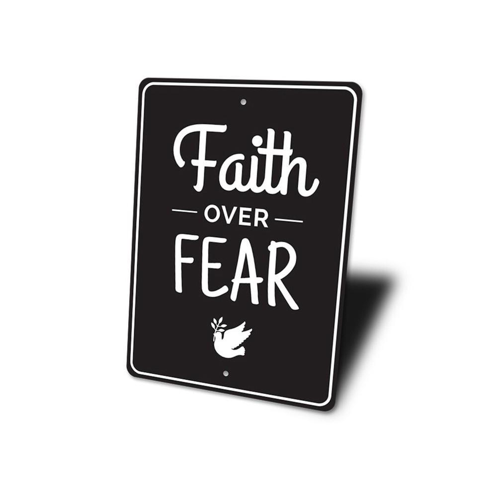 The Lizton Sign Shop Product Description Faith Over Fear Sign, Inspirational Bible Verse Sign, Scripture Wall Metal Sign **there may be slight variations in color and text spacing, however your sign will be very similar to the image above. Quality Aluminum Street Signs Sign Information Aluminum Brand New Sign Comes with rounded corners and pre-drilled for easy hanging. We use the highest quality materials - 100% USA-made! Great Gift Idea - Our signs truly make a one of a kind gift. Personalize the sign with the text you want to add. Custom text for the sign can be sent to us via email. A BRAND NEW SIGN!! All of our street signs are made of premium materials. The sign itself is made of aluminum and will never rust providing years of enjoyment indoors and outdoors. No Cheap plastic!! The Lizton Sign Shop specializes in quality personalized custom aluminum signs for any occasion. These make the perfect sign for any man cave, office, basement, garage, college dorm, kids bedroom, game room, bar, pub, tavern or countless other places. *Colors may vary slightly from one computer screen to the next but the image should be very close. All content and designs are subject to copyright and may not be reproduced in any form. Payment Methods We would prefer payment to be made through paypal but we also accept all major credit cards. If you select the credit card option please contact us after you make your purchase and we can walk you through the steps to make a secure payment. Return Policies We will accept returns within 30 days of the purchase date. The buyer is responsible for any costs to return the item or items. Returns will only be accepted for items that were damaged in shipping or if we made an error in the manufacturing of your item, i.e. spelling error.