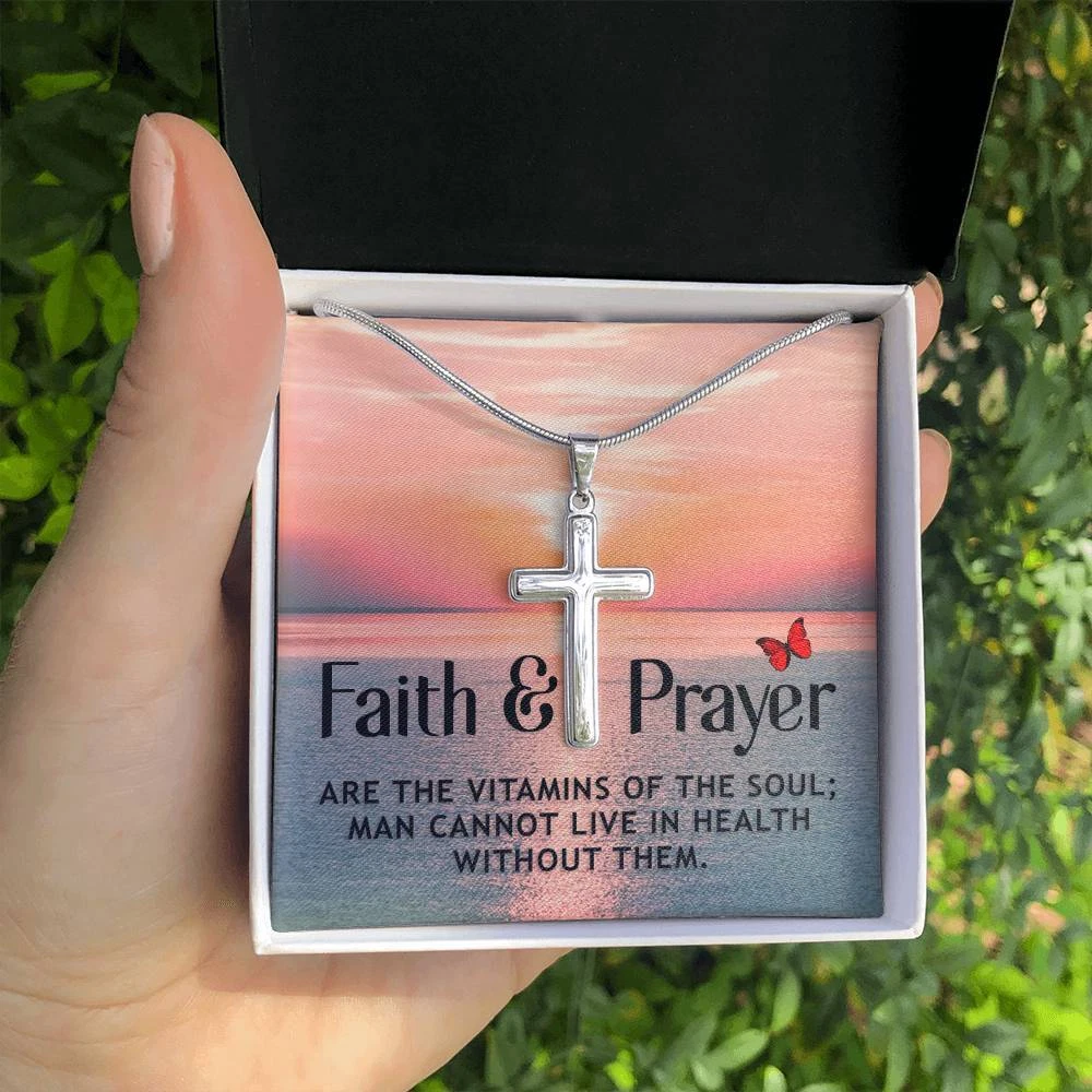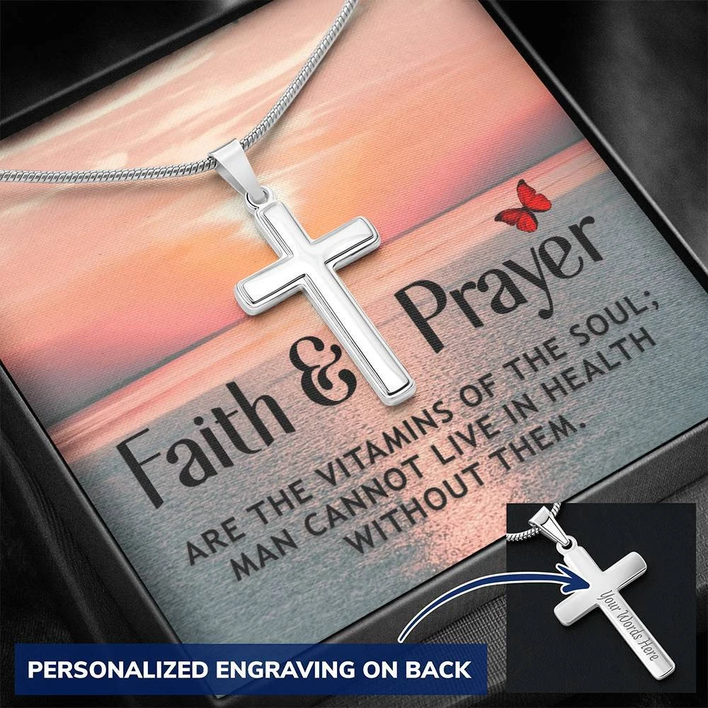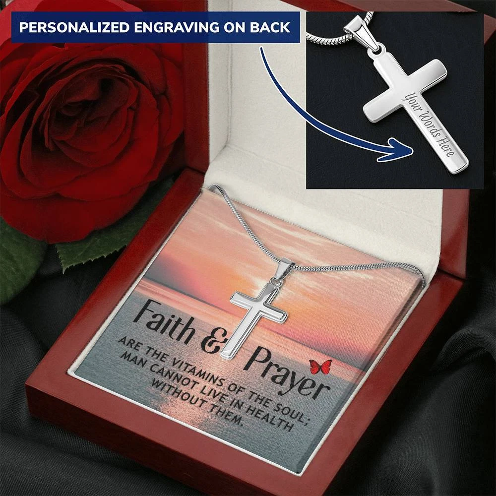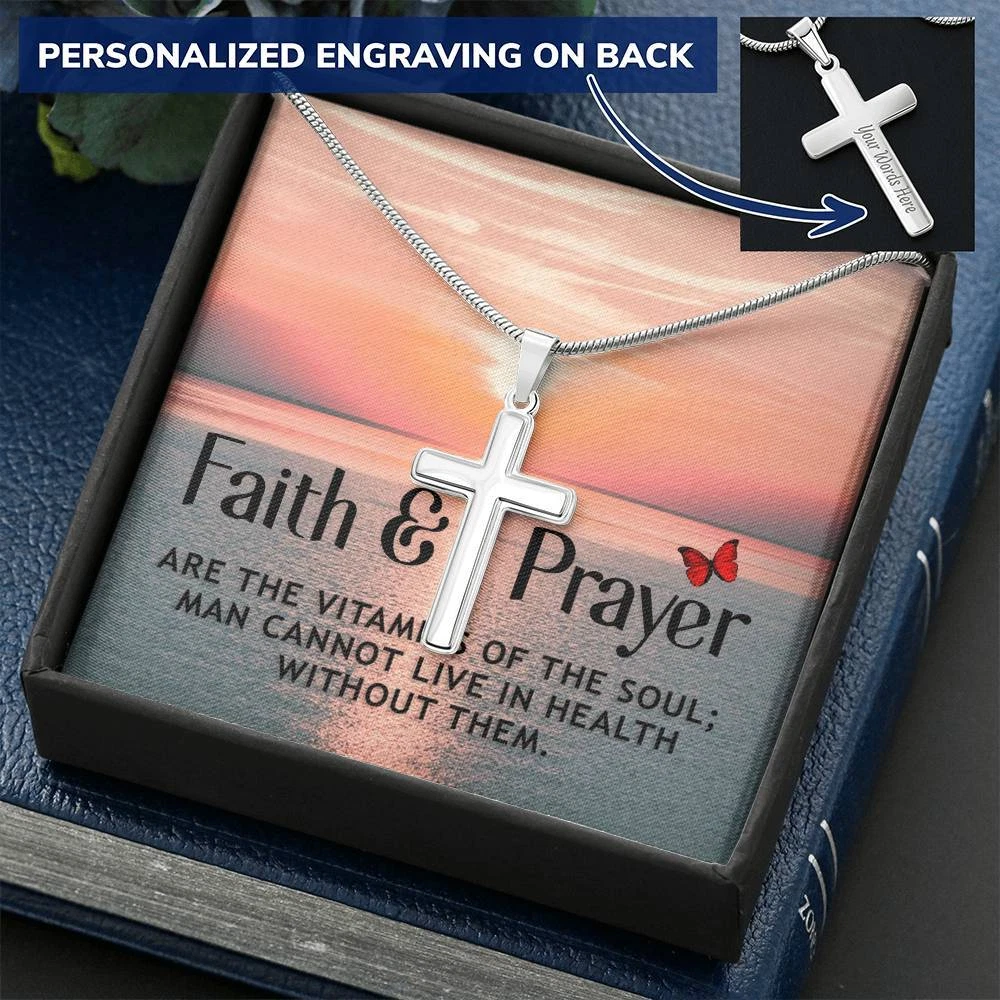 Wear your faith proudly with this Personalized Cross Necklace . Perfect for special occasions or everyday wear, our Personalized Cross Necklace is a wonderful gift idea for you or your loved one. The gorgeous pendant can be further personalized on the back with a name, date, or short message, up to 20 characters. This is a gift that will surely be treasured for years to come! Sizing is appropriate for all ages, and tasteful for both men and women. Crafted in high polished stainless steel, this piece will resist tarnishing and is hypoallergenic for sensitive skin. Includes a luxury adjustable snake chain (18" - 22") and attaches with an easy to use lobster clasp. Cross Necklace Details • Polished stainless steel • Pendant height: 1.3" (33.5mm) • Pendant width: 0.8" (19mm) • Adjustable snake chain (18" - 22") • Lobster clasp closure