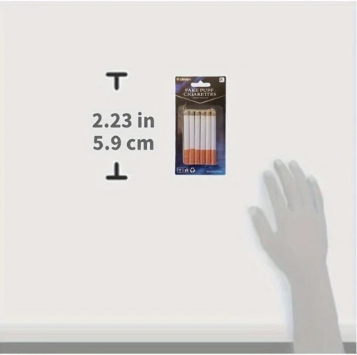Fake Cigarettes,3.25 Inch Fake Puff Cigarettes(Pack of 6), Faux Cigs with a Realistic Look Durable/Realistic - Ideal for Themed Parties/Theatrical Performances… Product Details Product Dimensions: 6.5 x 3.3 x 0.4 inches Item Weight: 0.493 ounces Manufacturer recommended age: 3 years and up Manufacturer: CLESEN PRANK THEM ALL: Dupe your family and friends with these pretend puff cigarettes!A perfect treat for certified pranksters and a cool gag toy to have people stupefied. 1 sets(a total of 6 fake cigarettes) IDEAL FORl. VARIOUS EVENTS/OCCASIONS: Our Brown Fake Puff Cigar Costume Accessory is the perfect finishing touch for Halloween costumes, costume parties, murder mystery dinners, themed weddings, and on-stage performances, easily enhancing any event or character portraya PRANK AND GAG TOY:These Cigarettes&Cigars are great for use as practical jokes or party favors at a quit smoking party, or as novelty toys.Dupe your family and friends with this fun prank and gag toy. REALISTIC LOOK: We’ve designed these 3.25” prop cigarettes to really sell that charade. They feature a speckled brown filter, white middle, and shiny red tips covered in gray, ash-like properties for a realistic burnt look. Looking for prank cigs that will have everybody fooled? You’ve found them. Cool props: Make clothing really popular; Let your audience immerse themselves on the stage or when shooting a movie.