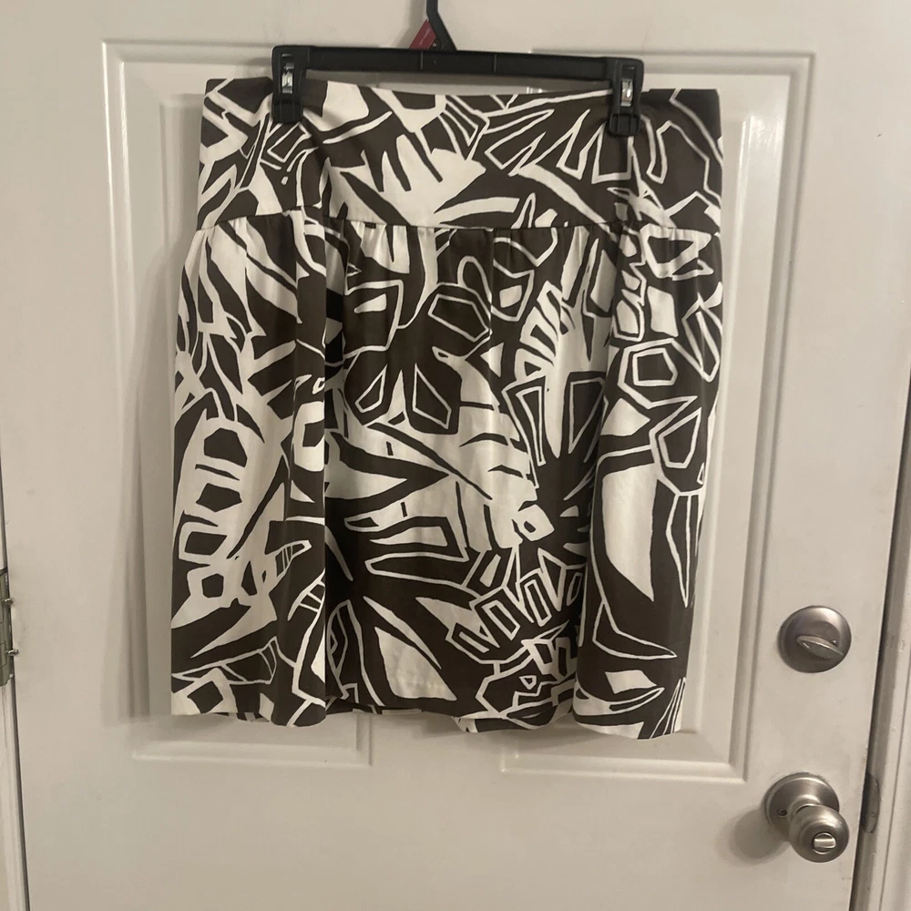 This beautiful Lauren Ralph Lauren skirt features a stunning green and white leaf design, perfect for a casual occasion. The skirt is made from a lightweight cotton and cotton blend fabric with an asymmetric hemline and stretch for added comfort. It has a button closure and knee-length mini style, making it a versatile addition to any wardrobe. The skirt is machine washable and suitable for winter, fall, and spring seasons. It is a regular size 10 and has no vintage or personalized features. The skirt is perfect for anyone looking for a modern and American-themed skirt that is both stylish and comfortable.