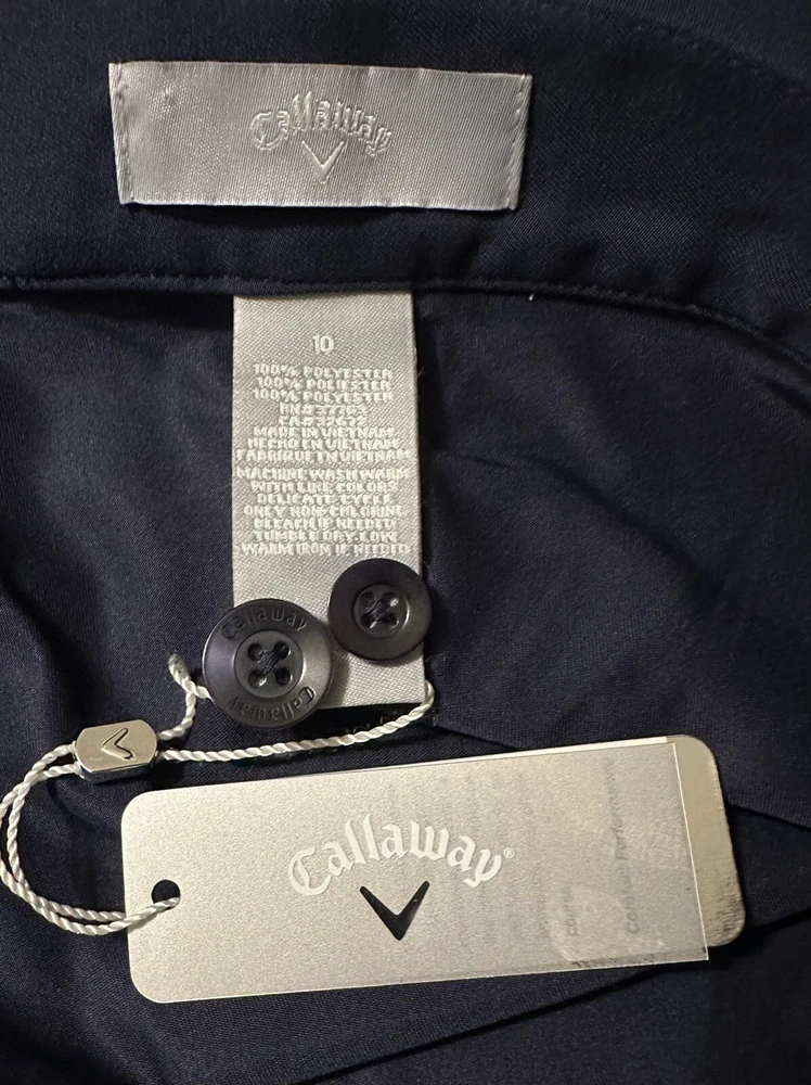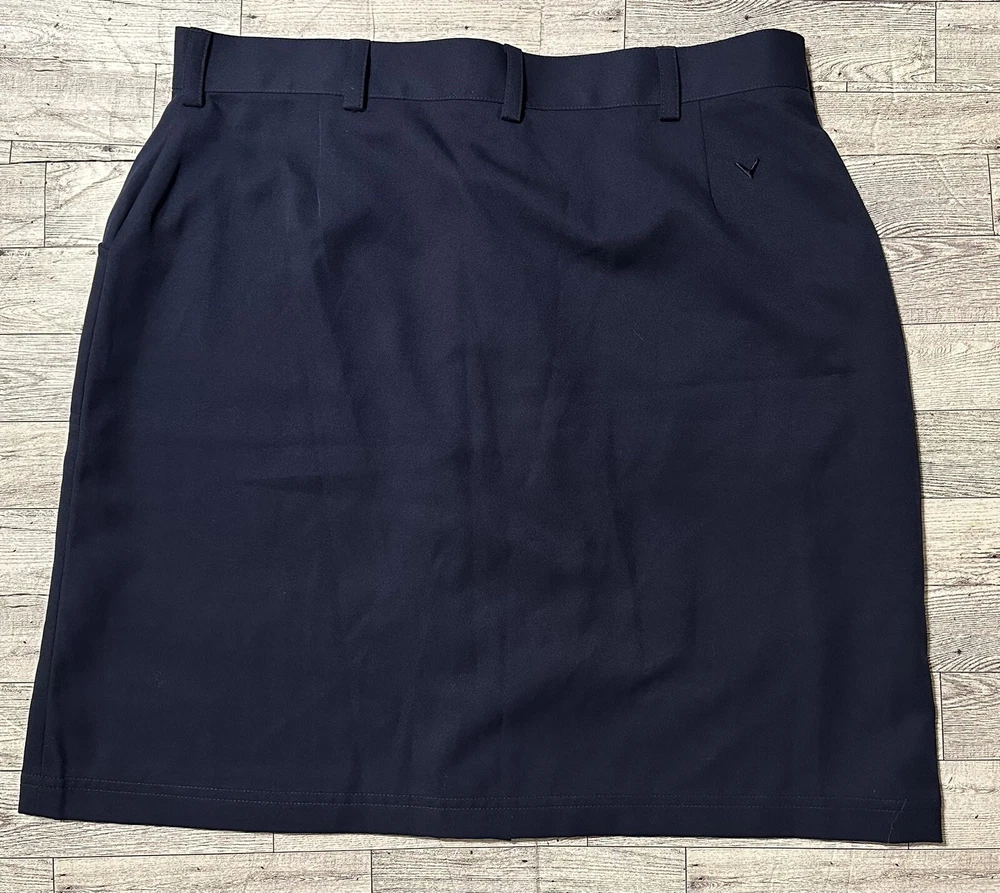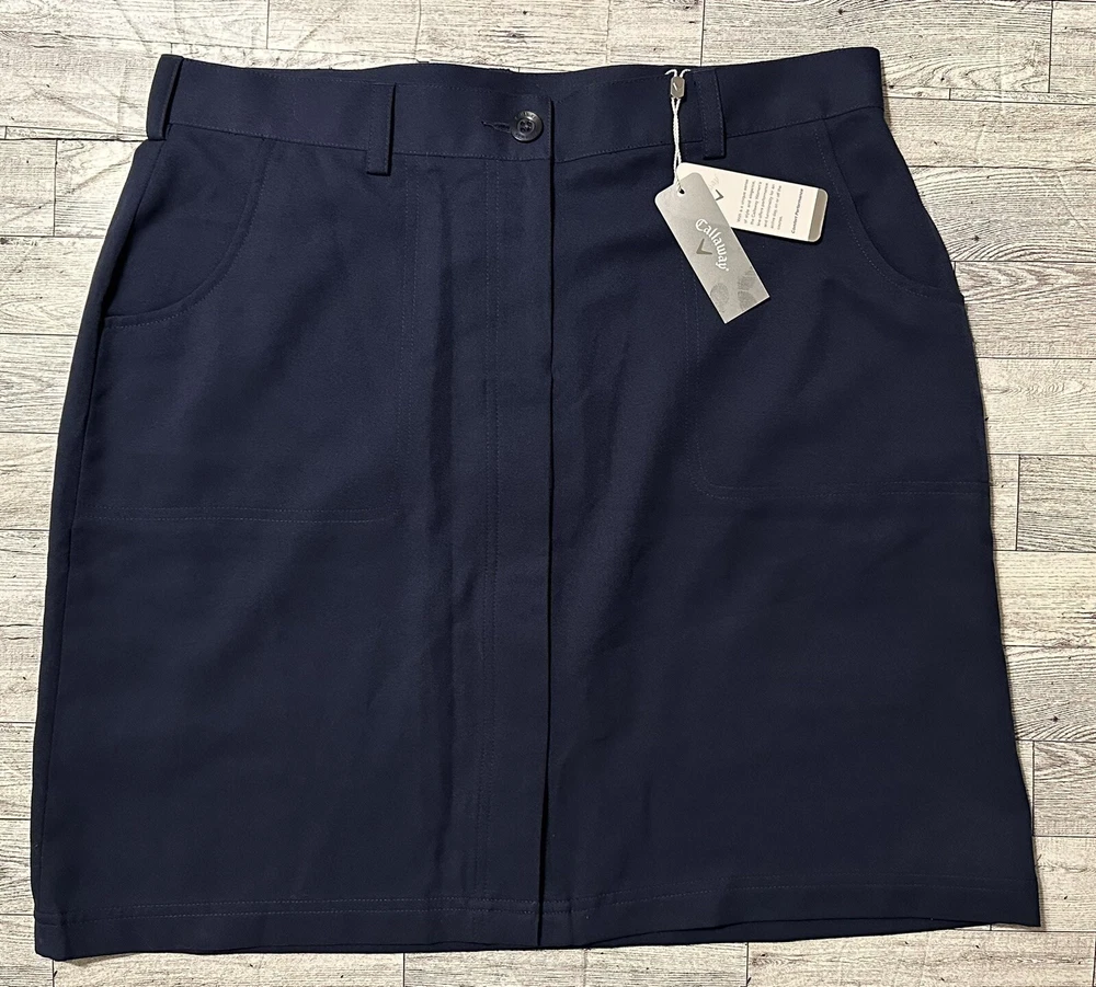 Elevate your golf wardrobe with this stunning navy blue Callaway Golf Skirt, perfect for any athletic woman who loves to play golf. This skirt is brand new with tags and a size medium (U.S. 10), making it an ideal fit for a range of women. The skirt features a classic and stylish design with an emphasis on performance, making it perfect for a day out on the golf course. The blue color adds a pop of brightness to your outfit, while the athletic style ensures you can move around comfortably without any restrictions. This skirt is perfect for anyone looking for high-quality golf clothing, and it's sure to be a staple in your golf wardrobe.