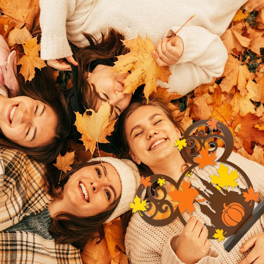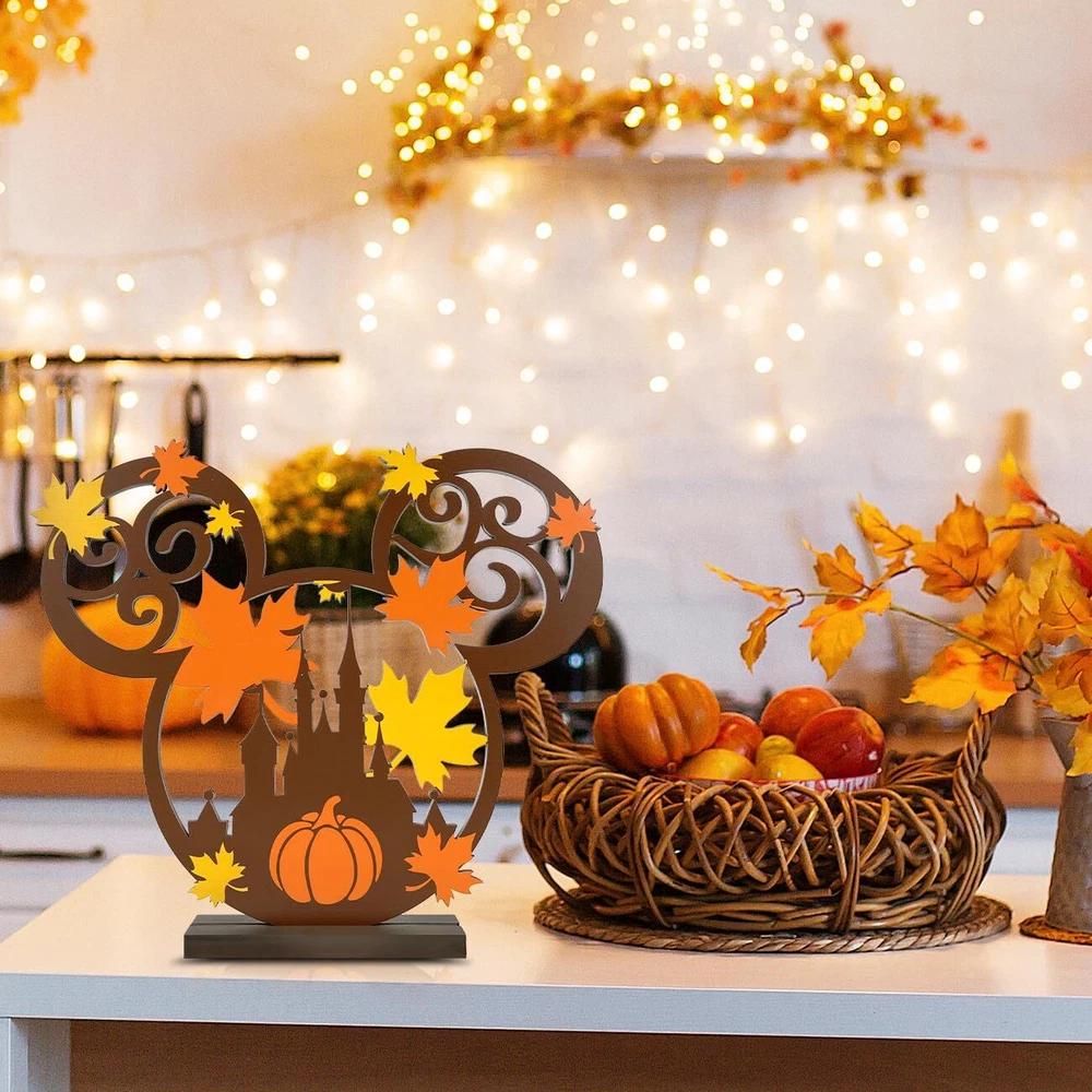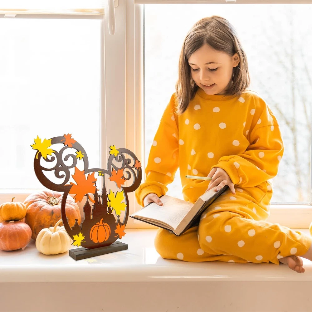 Bring the warmth and charm of autumn into your home with these delightful Happy Fall Table Decoration Signs. Crafted from natural wood, these Thanksgiving centerpieces feature adorable mouse figurines perched atop, adding a whimsical touch to your festive table setting. The intricate carved details, including a Disney Mic-key Mouse-inspired pumpkin head surrounded by vibrant fall leaves, capture the essence of the harvest season. Whether you're hosting a Thanksgiving feast or simply embracing the cozy ambiance of autumn, these table toppers will become a cherished part of your holiday decor. Measuring approximately 13 inches in height, they're the perfect size to create a focal point on your dining table or sideboard. Celebrate the beauty of fall with these charming and unique decorative pieces. Hall Fall Table Topper: Measuring approximately 13 inches in height, they're the perfect size to create a focal point on your dining table or sideboard. Fall wooden table toppers featuring a cute mouse design, perfect for Fall and Thanksgiving decorations. Thanksgiving Indoor Decorations: This Thankgiving mouse wooden sign create a charming centerpiece or scatter around the table. Happy Fall Table Decoration Signs: Crafted with warm colors and leaf motifs, capturing the essence of the harvest season. Harvest Party Table Centerpiece : Made from high-quality wood for long-lasting use and easy storage year after year. Multipurpose Ornaments: Mouse wood decorations can also be used as decorative accents for Halloween, Christmas, or Harvest seasonal decor.