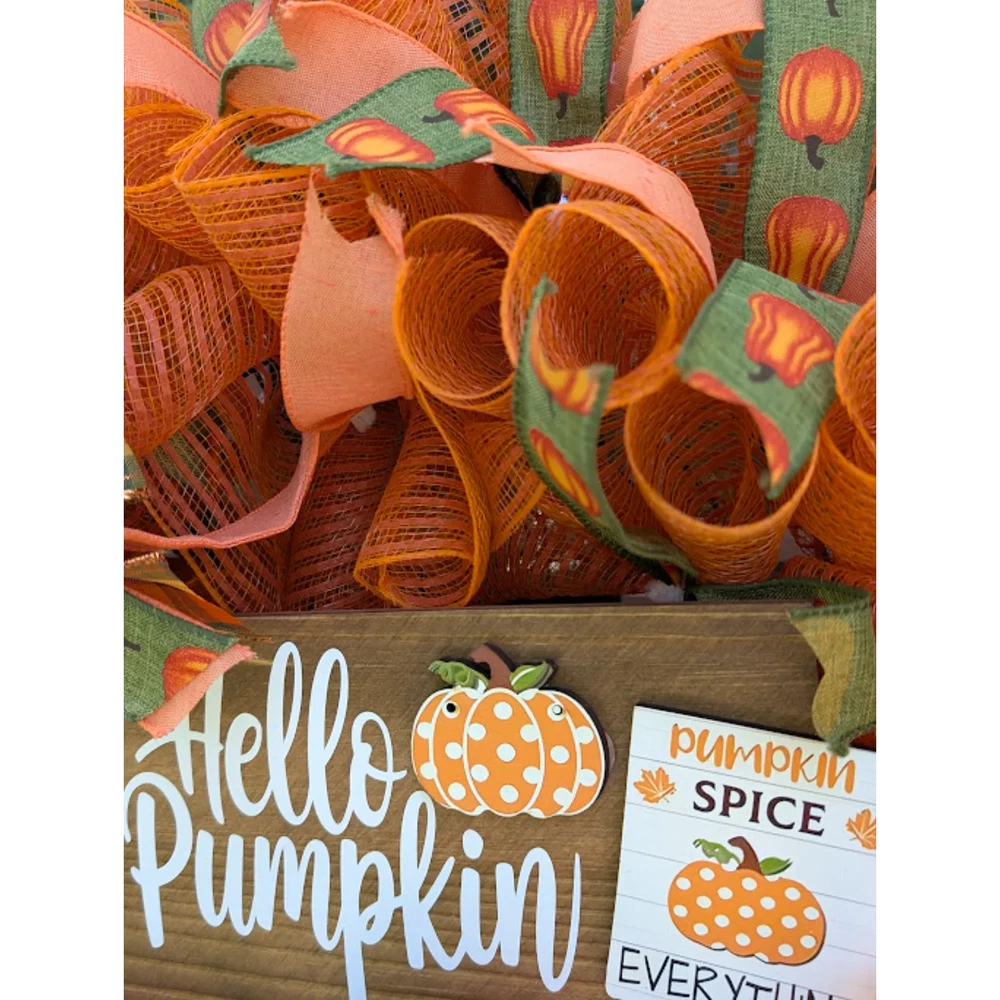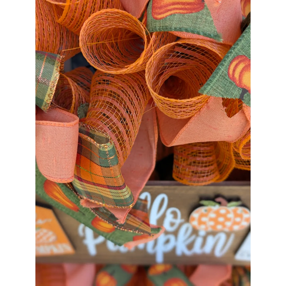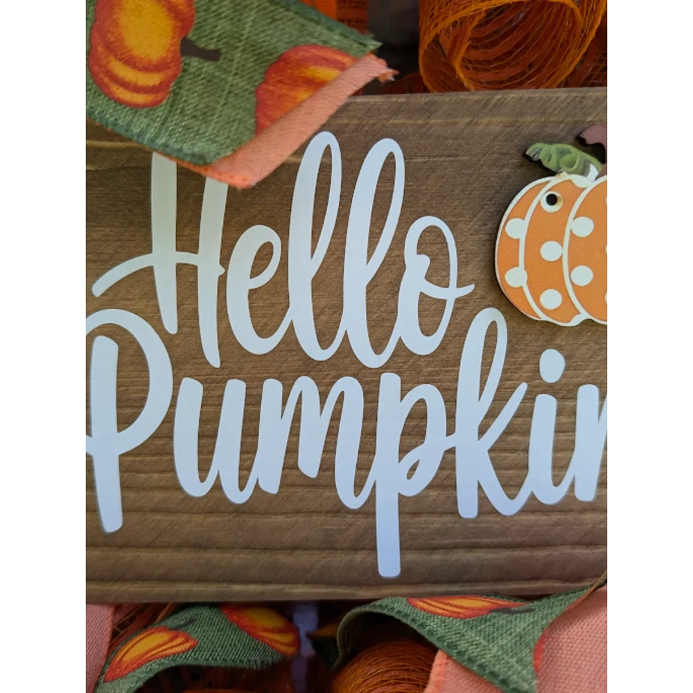 This Fall Wreath is a handmade door decoration perfect for welcoming guests into your home during the fall season. Made from mixed materials including wood and fabric, this orange wreath features a "Hello Pumpkin" sign, adding a charming touch to your front door. The artificial wreath is 23 inches in height and width, making it a striking statement piece for your home decor. Handmade with care in the United States, this seasonal wreath is sure to bring a touch of warmth and cheer to your space. This decorative piece is suitable for any room, porch, or door, adding a welcoming touch to the space. They can be hung anywhere - in a kitchen, living room, family room, bedroom, foyer, or over a mantel or fireplace. And don't forget about gifts for your special person. *I will ship this out the following day. If you have any questions, please don't hesitate to ask. *I'm always open to custom orders. Just message me with your idea, and I'll work with you, and a custom wreath or sign can be yours! *If you favorite my shop, you will see my newly added wreaths and wooden signs that I have made. If any questions, please don't hesitate to ask. I will get back to you. *If displaying outdoors, it's best to bring in your wreath during inclement weather.