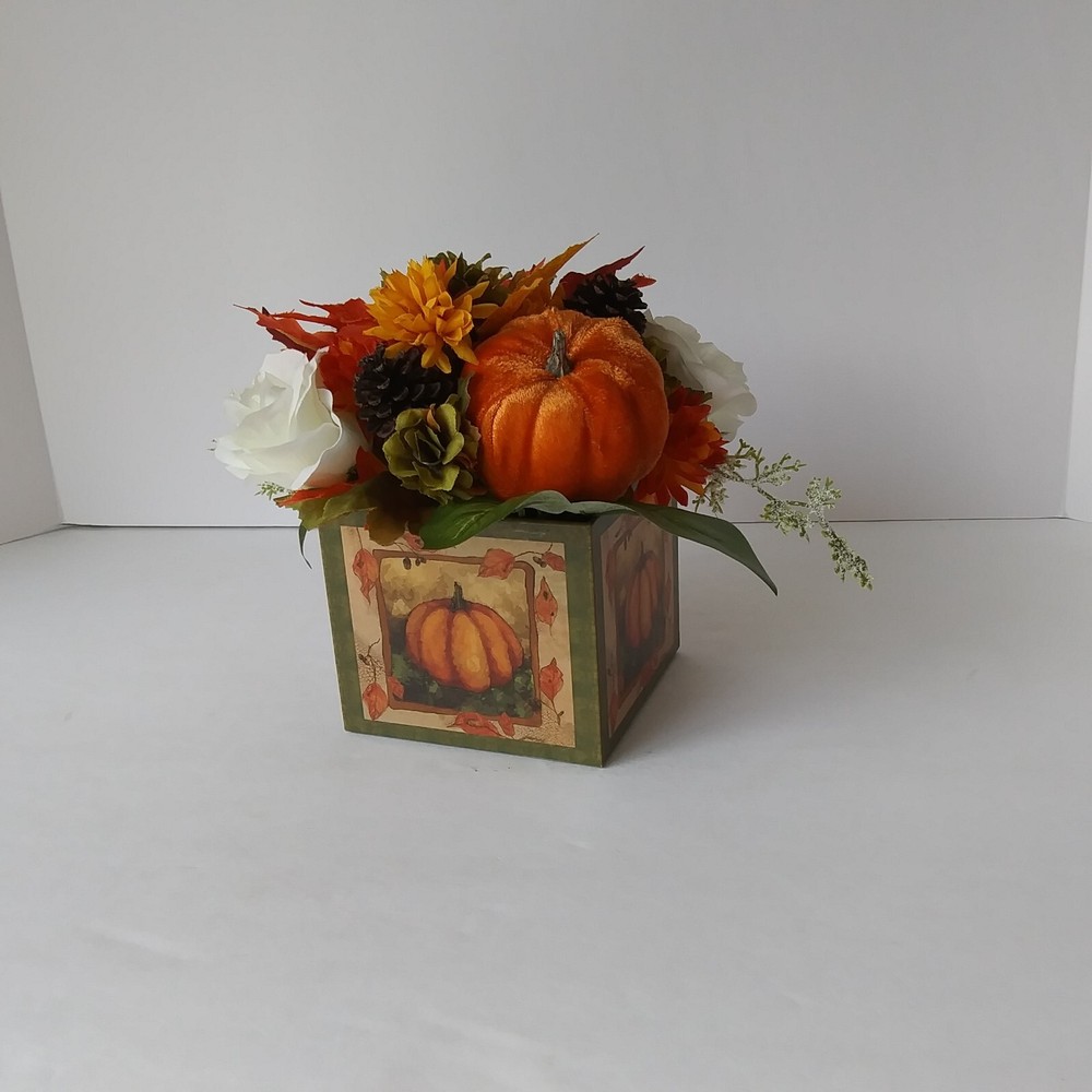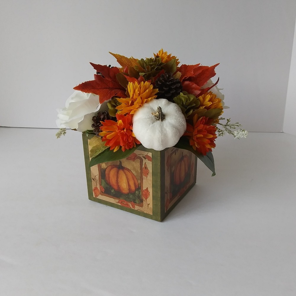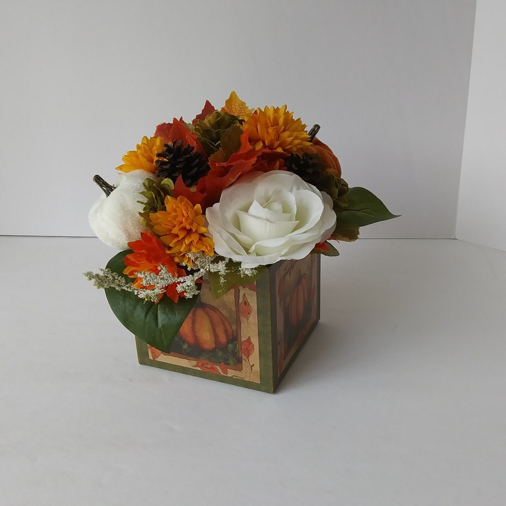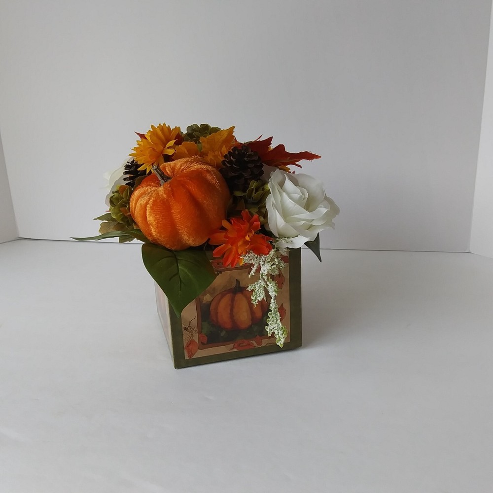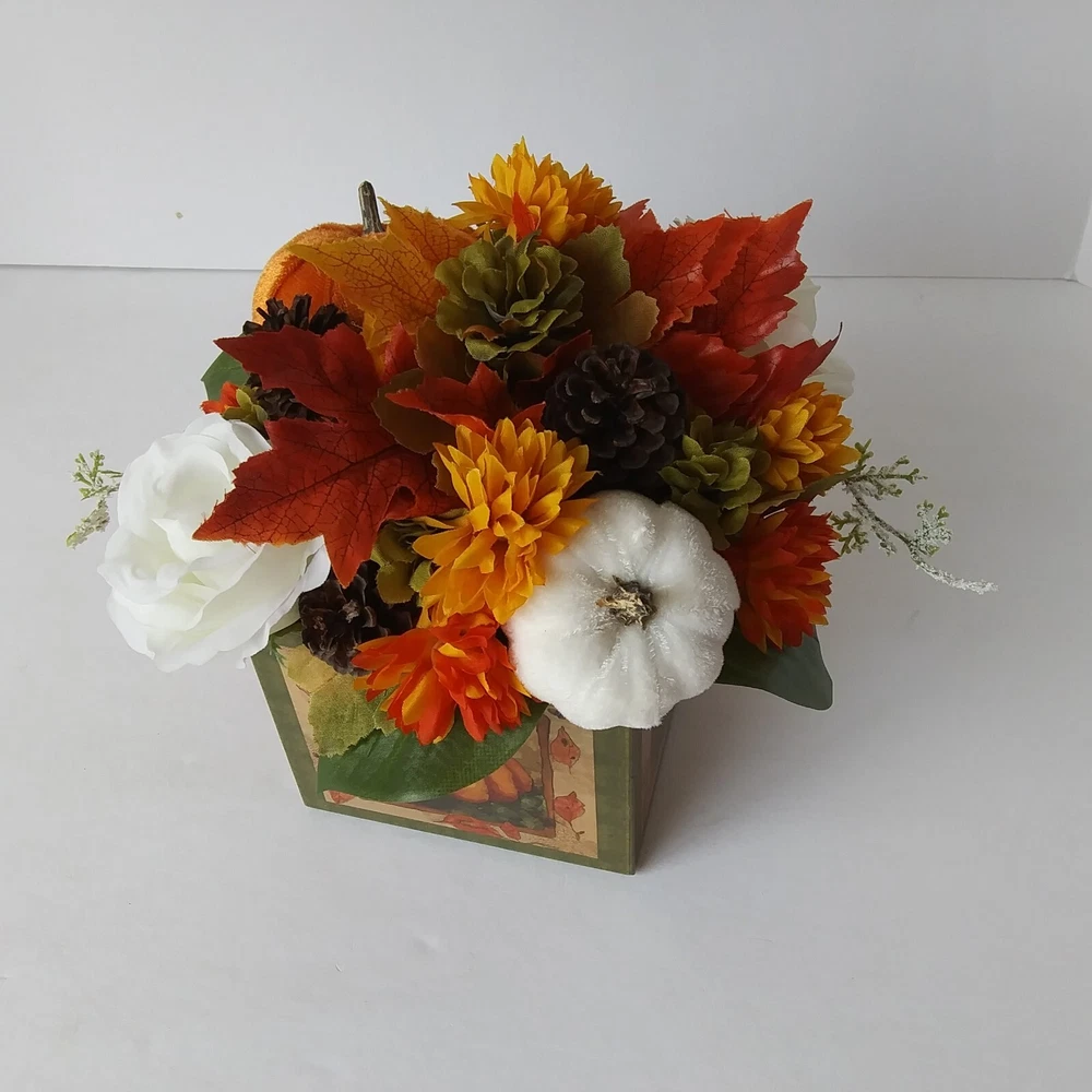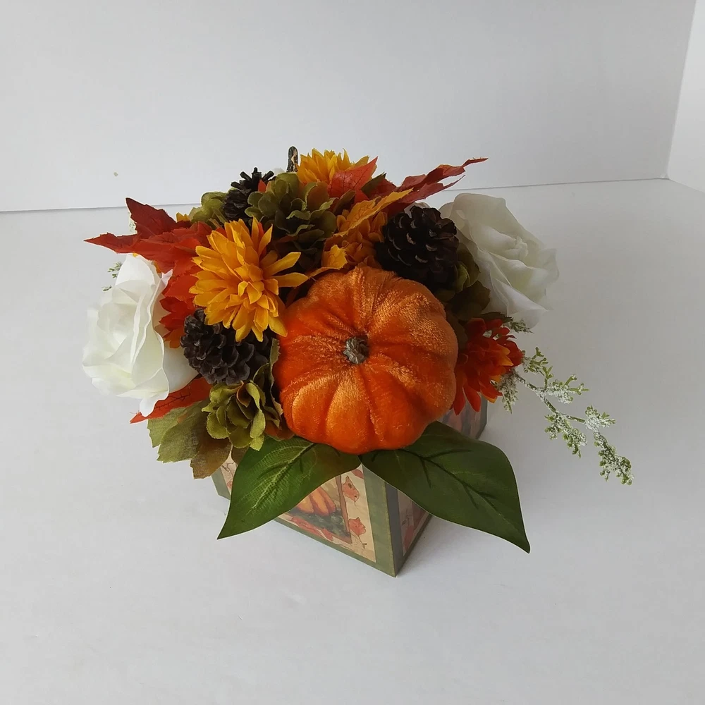 Upscale Designer One of a Kind Fall Table Centerpiece handcrafted in the Berkshire Mountains with love! Add a touch of seasonal charm to your home with this beautiful Fall Floral Pumpkin Arrangement. Crafted with cardboard material and artificial flowers, this centerpiece boasts a multicolor design that will complement any room's decor. Measuring 12 inches in length, 9 inches in width, and 8 inches in height, this unit is perfect for any tabletop or countertop. Whether you're looking for a centerpiece for your office, study, bathroom, den, or living room, this Fall Floral Pumpkin Arrangement is the perfect addition to your home decor. This traditional and customized-free centerpiece is ideal for any occasion, including Thanksgiving, and is sure to impress your guests. It also makes a special gift for fall for someone special. It is absolutely beautiful. Note: 30-day returns are accepted, but please contact me with any issues. My goal is for you to love your arrangement. Returns must be received in original new condition; buyer pays shipping and insurance both ways.