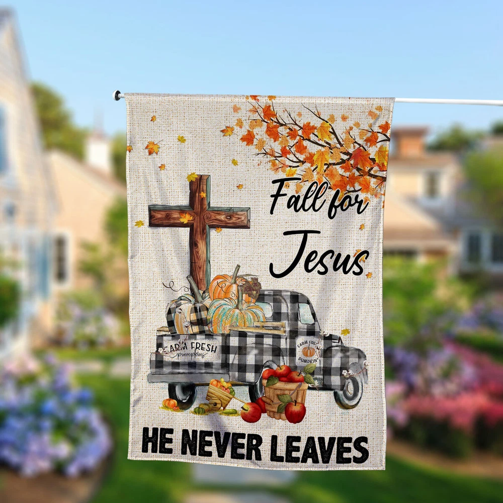 Welcome Fall Thanksgiving Flag Fall For Jesus He Never Leaves Thanksgiving Truck Pumpkins House Garden Flag Home Yard Gift Decor Double Sided ID-0920-G3HK High-resolution digital printing on durable corflute material Free from holes, grommets, strings, or nails Completely customizable & available in 2 pre-defined sizes 2-sided printing Flag stands and poles not included. Printed on a premium polyester with vibrant colors. Perfect for indoor and outdoor use. Easy to hang, fold up and pack away. Due to the different monitor and light effect, the actual color of the item might be slightly different from the visual pictures.