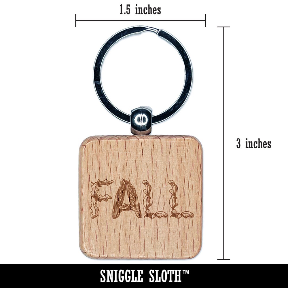 Fall Harvest Engraved Wooden Square Keychain Charm Tag