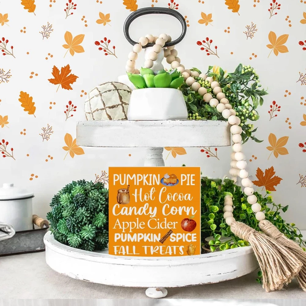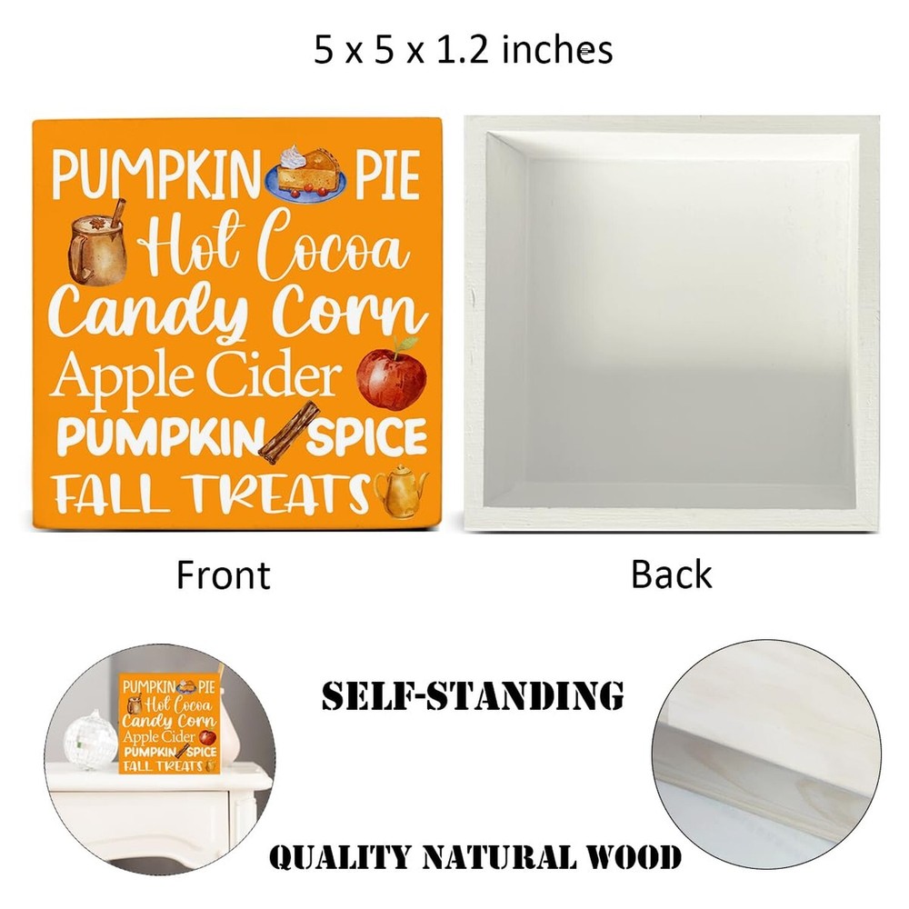 Fall Kitchen Decor Pumpkin Wood Sign Autumn Decorations Farmhouse Home Table Desk Decor (5 x 5 Inches) Product Details Color: Hot Brand: Zauly MPN: Zauly 01403 UPC: Does not apply EAN: Does not apply Color: Hot Brand: Zauly Material: Wood Theme: Pumpkin Spice Recommended Uses For Product: Seasonal home decor, Kitchen decor, Autumn or Fall themed events Product Dimensions: 5"L x 1.2"W Shape: Square Style: Modern Pre-printed: Pumpkin Pie, Hot Cocoa, Caramel Apple Cider Spice, Maple Bacon, Apple Cider Spice Included Components: Pumpkin Spice Candle, Apple Cinnamon Scent Item Weight: 0.988 ounces Manufacturer: Zauly Country of Origin: China Item model number: Zauly 01403 Warm Design: This fall wood sign is filled with fall quotes and patterns. May you have a happy and unforgettable fall. Suitable Size: This fall sign measures approximately 5 X 5 inches, a cute size without taking up too much space. Wooden Material: This fall wood sign is made of high-quality wooden material, which is strong, durable and not easy to deform. Great for various occasion decorations. Extensive Used: You can use this fall wooden sign to decorate your home, living room, bedroom, kitchen and more. Decorative Sign: This fall wood sign is a simple and effective way to decorate your home for fall. Just place it in your home and it will add color and interest to your home. Warm Design: This fall wood sign is filled with fall quotes and patterns. May you have a happy and unforgettable fall.