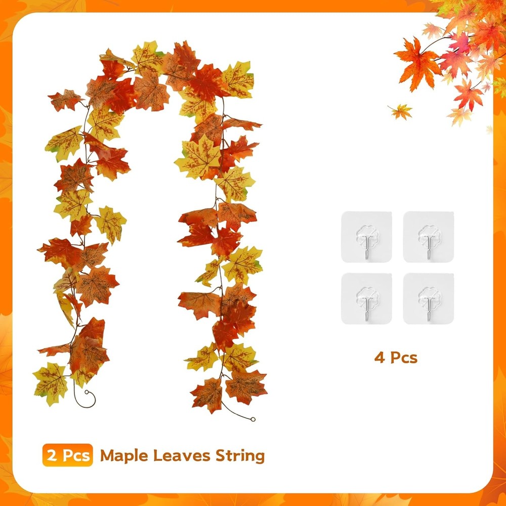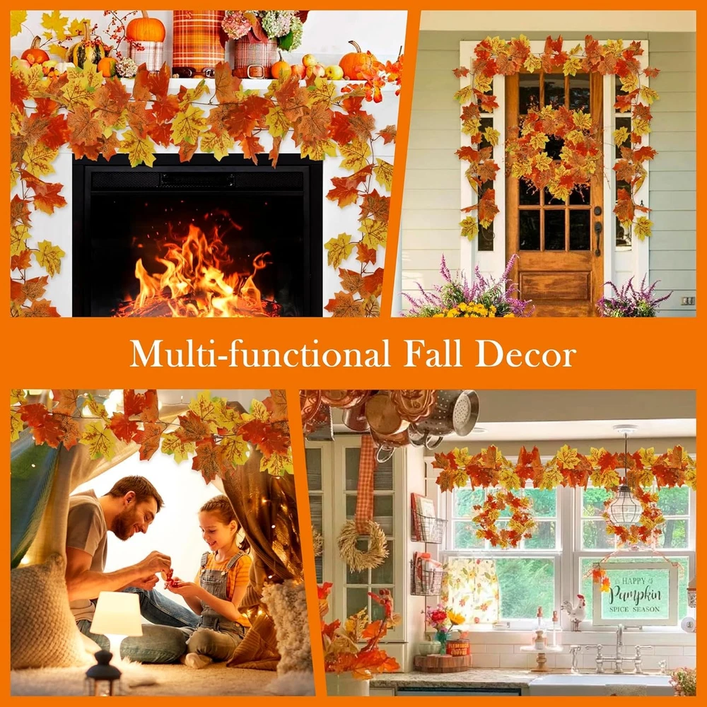$ 16.9Sggvecsy 3-Pack 5.7Ft Orange Maple Leaf Fall Garland Decor