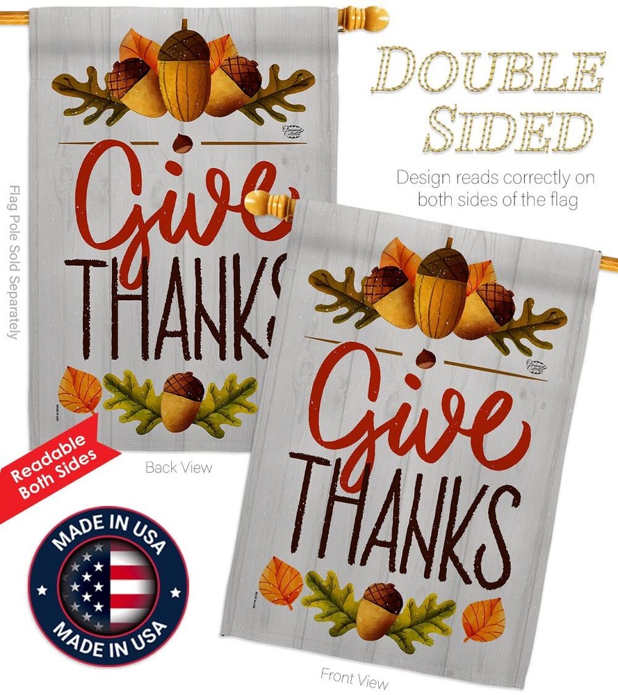 Thanksgiving Beautiful Large House Flags Pack with Support Our Troops - House Flag 28" x 40" have variety of House Flags Pack for all occasions. Uniquely design for hanging indoor or outdoor use. We are committed to offering you exceptional values. Our customers enjoy displaying our House Flags Pack for longer periods. Specification: Theme: Thanksgiving Size: House Flags Pack 28" x 40" Print: Double-Sided Readable: Readable Both Sides Material: Weather Resistant 3 Layers Blockout Stitching: Double Stitched Display: Vertical Hang Type: Sleeve Artist: © Megan Tanaka Special Features: Origin: Made In USA Package Include: For more than a decade, we’ve been dedicated to manufacturing flags with no comparison in quality and beautiful designs. Our flags are made with our Guard material that is soft to the touch and designs can be read correctly on the flag. A feature that our customers will love. We are committed to using eco-friendly inks that won’t leave a foot print in our environment. MPN: OC-TG-HP-192137-IP-BOAF-D-US19-OC 92137 92137 PROUDLY Made In USA - Package And Product Designed In California PURCHASE WITH CONFIDENCE - From 's US Authorized Resellers MADE OF DURABLE -100% Thick Polyester Fabric construction helps resist the wear and tear from frequent use TEXT READABLE BOTH SIDES - House Flags Pack Double-Sided Print DURABLE FLAG - Double stitching panels on multiple rows and high quality Sleeve to provide lasting strength VIBRANT COLORS - With UV-Resistant Maintains Its Colors All Season Long FEATURES - Sleeve Hanger fits standard Banner/Flagpole, Bracket, Arbors or stand, SOLD Separately