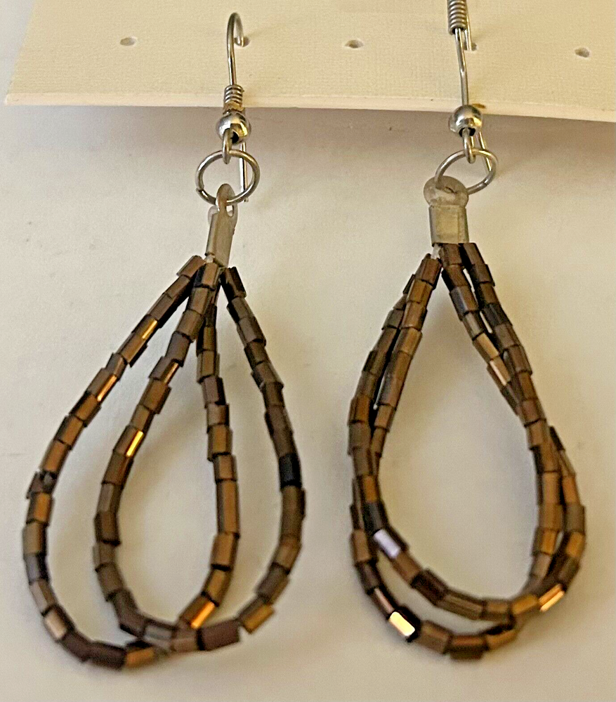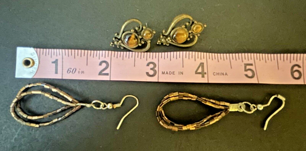 Get ready for fall with these two stunning pairs of earrings! The first pair features Tiger's Eye stones set in a warm bronze-tone setting, radiating earthy, golden hues that capture the essence of autumn. The natural stone's rich colors are beautifully complemented by the vintage-inspired bronze design, making them a perfect accessory for the season. The second pair offers a fun and stylish look with delicate bugle bead danglers, adding movement and sparkle to your ensemble. These lightweight earrings feature shimmering beads that catch the light and create a lovely, cascading effect. Both pairs are ideal for adding a touch of elegance and charm to your fall wardrobe, whether you're dressing up for an event or adding a bit of seasonal flair to your everyday outfits. A perfect duo for autumn jewelry lovers
