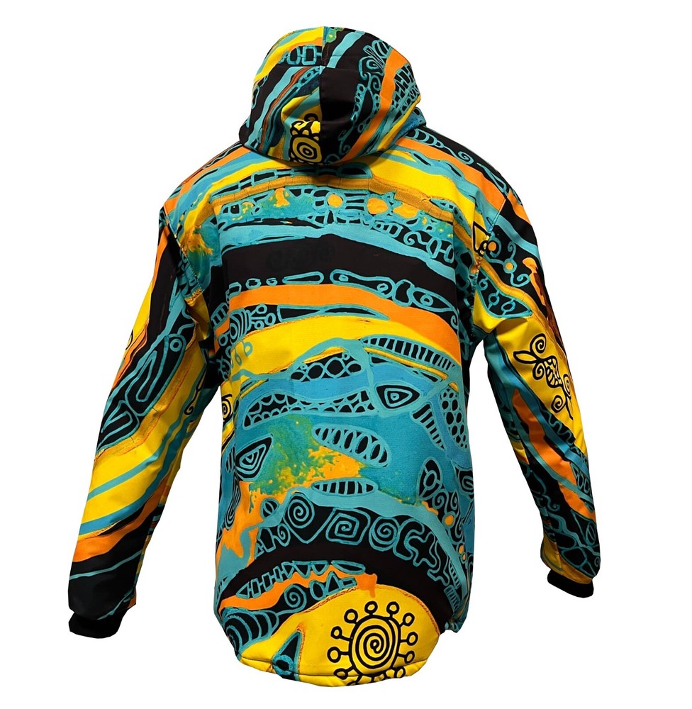 FALL / WINTER – Men’s sport jacket made of softshell material. Waterproof, windproof. - 5x zip pocket - 1x inside pocket - hood - wrist cuffs - fleece lining (fall) - warm wadding lining (winter) Pattern: CYBER SWIRL Availability: Production time 5-10 days, Delivery 6-13 days. Composition: outer material softshell 100% Polyester , lining: fall (fleece polyester 100%), winter (wadding polyester 100%) WHY LEMINX? - ACTIVE ARTIST SINCE 1999 - FUNCTIONAL CLOTHING - MADE IN SLOVAKIA - PSYCHEDELIC ART - SATISFACTION GUARANTEED