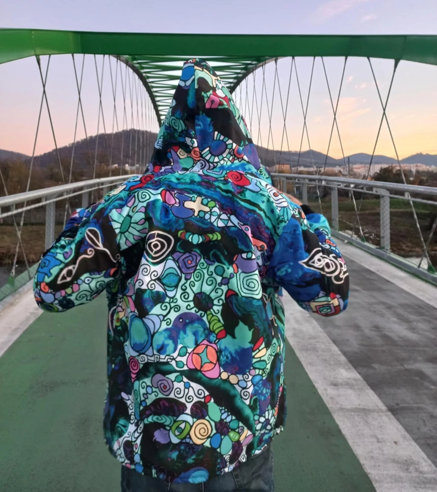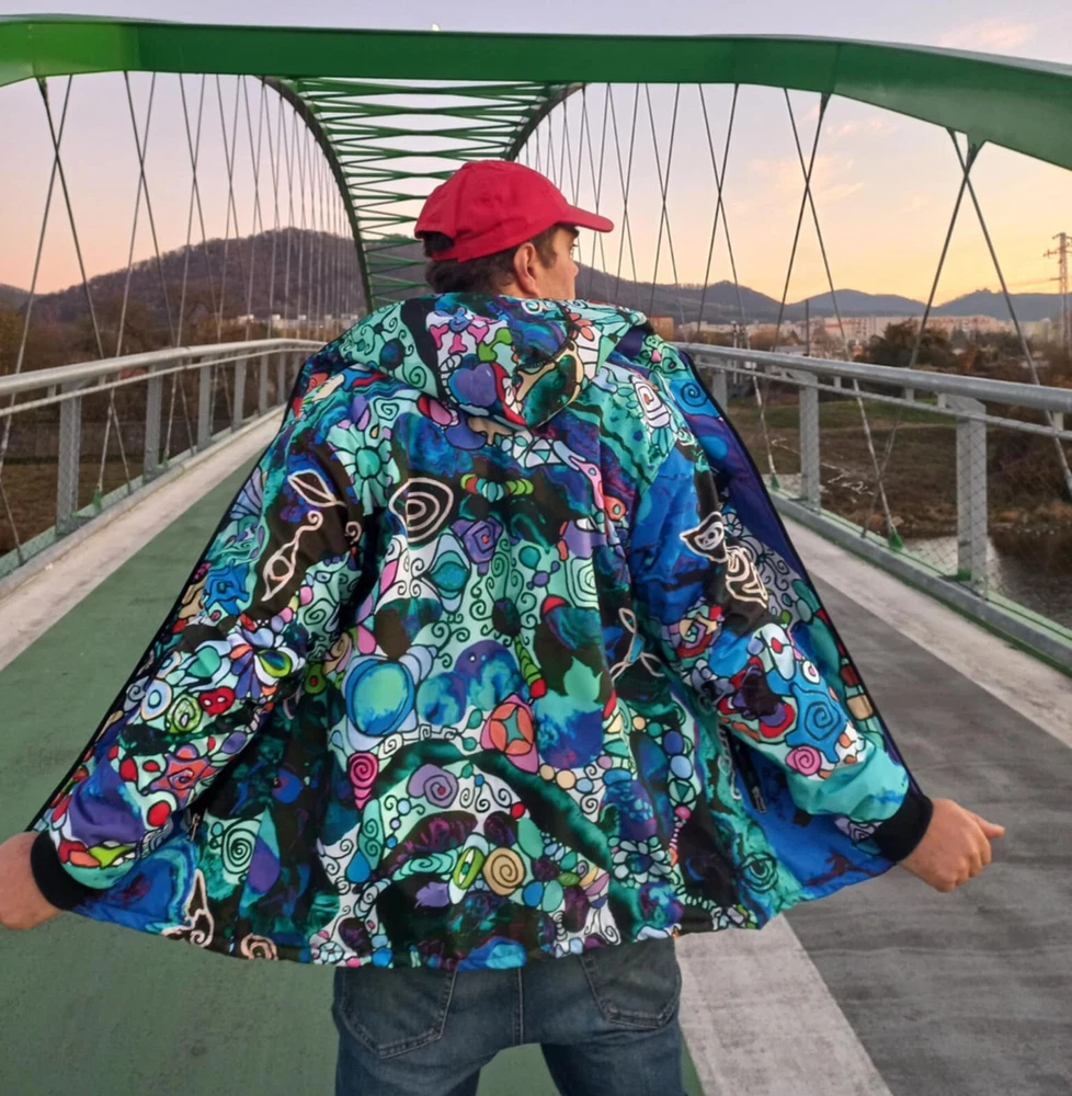 FALL / WINTER – Men’s sport jacket made of softshell material. Waterproof, windproof. - 5x zip pocket - 1x inside pocket - hood - wrist cuffs - fleece lining (fall) - warm wadding lining (winter) Pattern: JELLY Availability: Production time 5-10 days, Delivery 6-13 days. Composition: outer material softshell 100% Polyester , lining: fall (fleece polyester 100%), winter (wadding polyester 100%) WHY LEMINX? - ACTIVE ARTIST SINCE 1999 - FUNCTIONAL CLOTHING - MADE IN SLOVAKIA - PSYCHEDELIC ART - SATISFACTION GUARANTEED