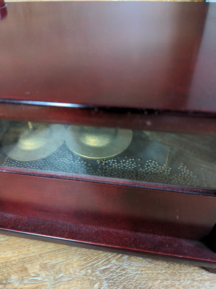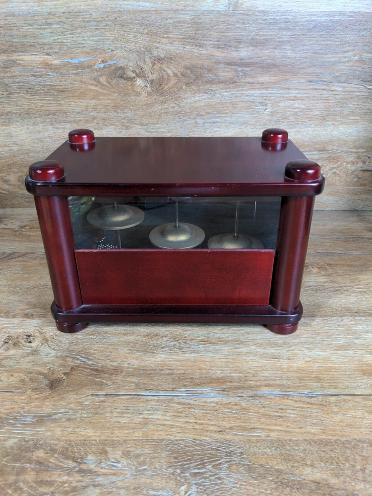 Falling Rain Nature Chimes Wood Wooden Box w Beads Zen Sound Meditation. Cherry wood color. Measurements are approximately 10.5" long, 7" tall, 6" wide. Items has some scratches on the wood. Tested and working. Condition is pre-owned. Shipping whatever rate is best to get to you UPS or FedEx. Also checkout my eBay store for other awesome listings, Thanks for looking!