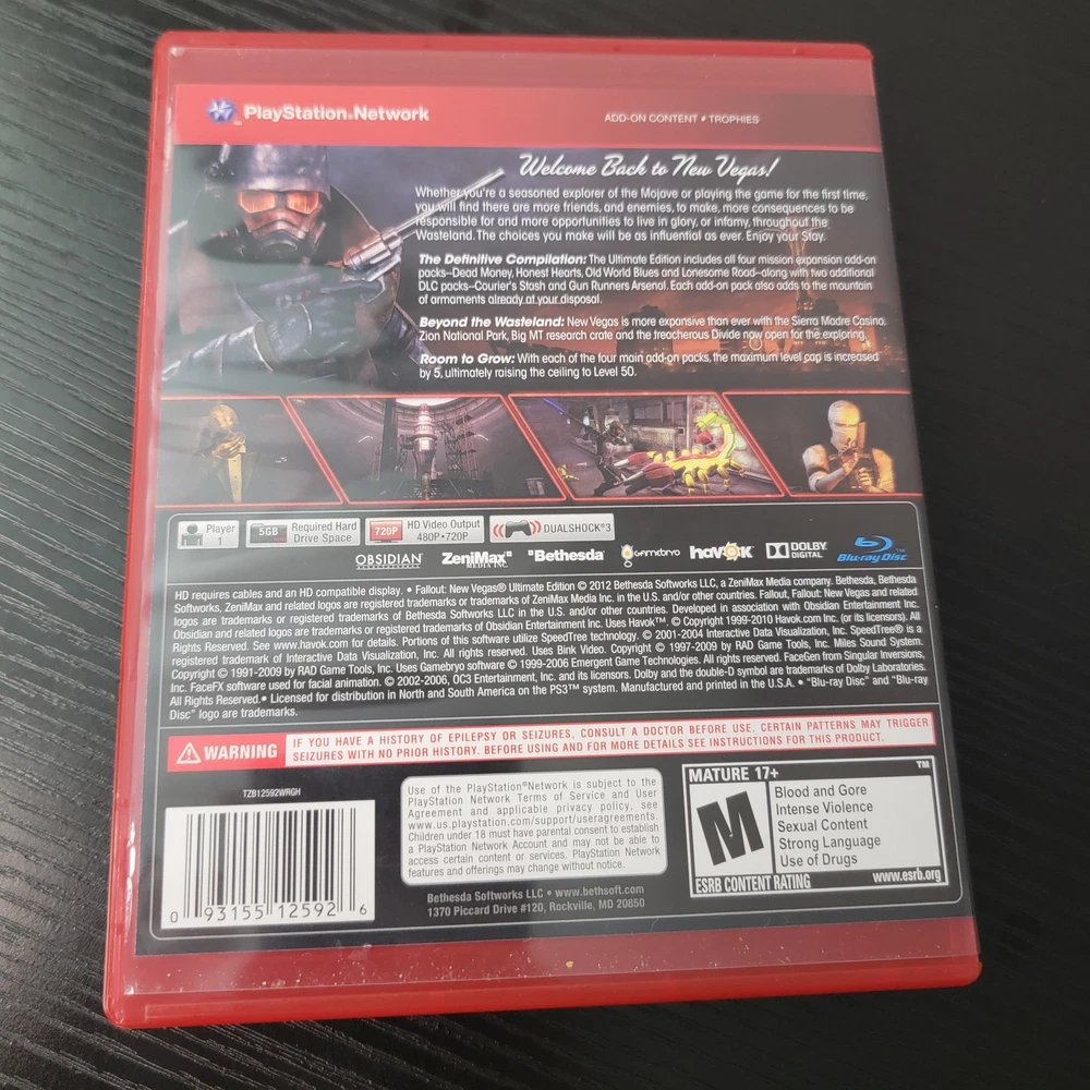 Video Game Series:FalloutFeatures:Ultimate EditionPlatform:Sony PlayStation 3Rating:MRegion Code:NTSC-U/C (US/Canada)Release Year:2012Publisher:SonyGenre:Action & Adventure, Role PlayingGame Name:Fallout