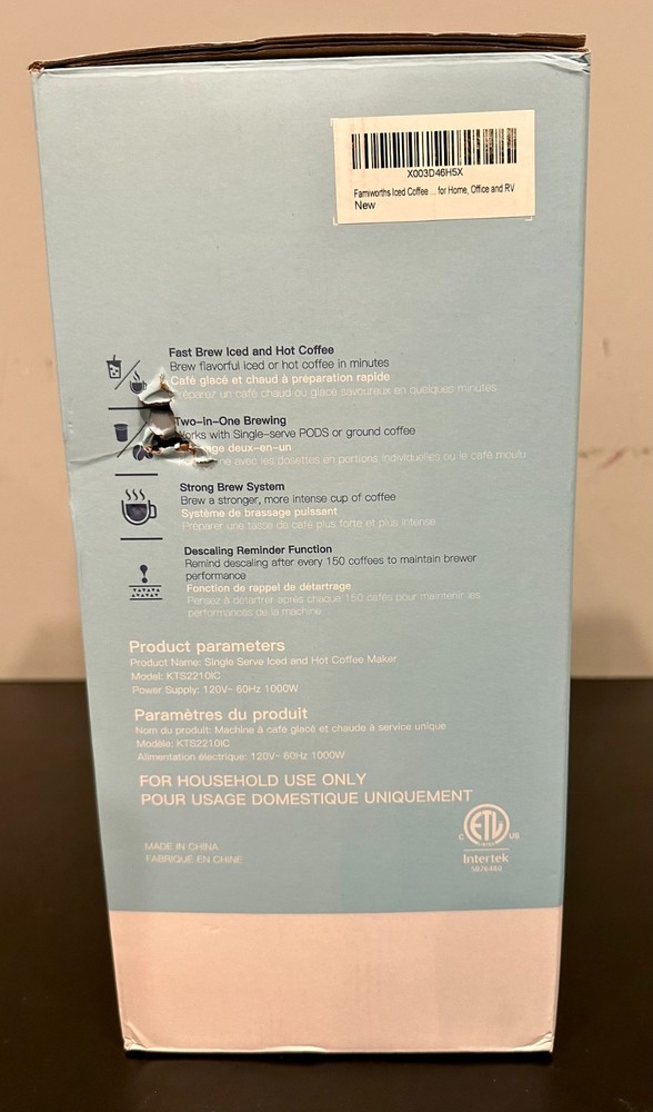 Famiworths Iced Coffee Maker, Hot & Cold Coffee Maker Single Serve *NEW/OPEN BOX* Ships via USPS Ground Advantage.