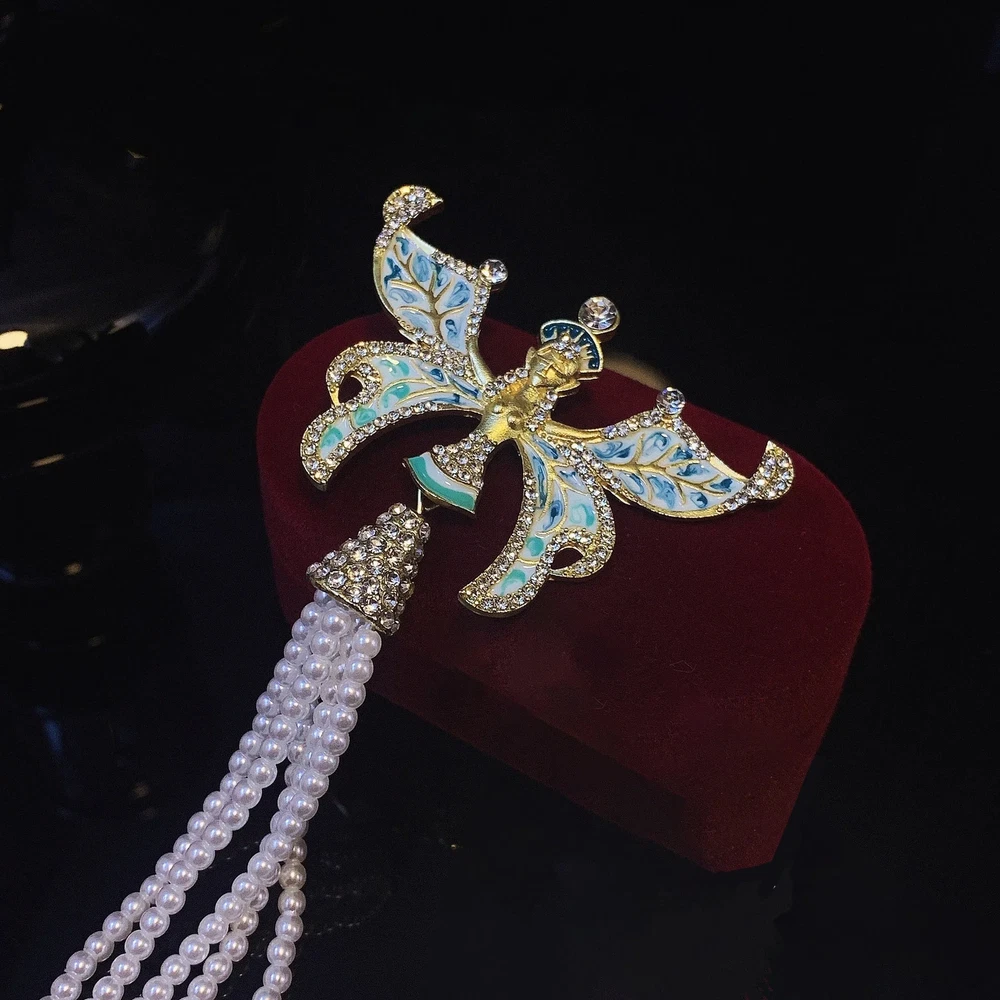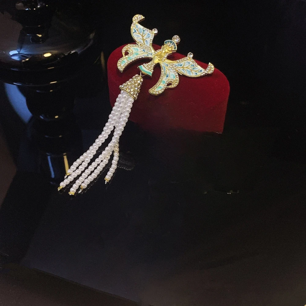 Famous Design Butterfly Pearl Tassel Brooch for Women Luxurious Elegant Jewelry
