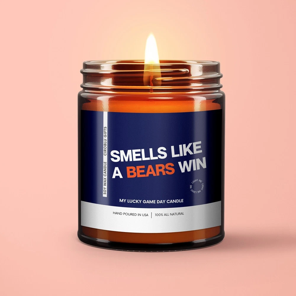 The Lucky Charm Bears Win Candle is the perfect gift for any Bears Sports Fan. This hand-poured 9 oz. candle is specifically designed to capture the essence of a Bears victory with its unique aroma. Made with love and attention to detail, this candle measures 3 inches in diameter and 3.5 inches in height, providing a long-lasting burn time of up to 50 hours. Highlights: - Hand-poured 9 oz. candle - Captivating scent that captures the essence of a Bears win - Measures 3 inches in diameter and 3.5 inches in height - Long burn time of up to 50 hours - Made with high-quality natural soy wax blend - Features a 100% cotton wick for a clean burn - Comes in a stylish glass jar with a permanent adhesive label Benefits: 1. Personalized Gift: This candle is a distinctive and personalized present for any Bears Sports Fan. It showcases their love for the team and creates a unique gifting experience. 2. Aroma of Victory: The captivating scent of this candle enhances the ambiance and creates a pleasing atmosphere reminiscent of a Bears win. 3. Clean Burn: Crafted with a natural soy wax blend and a 100% cotton wick, this candle ensures a clean burn without harmful toxins or soot. 4. Long-Lasting: With a burn time of up to 50 hours, this candle provides hours of enjoyment, making it perfect for any occasion. 5. Stylish Design: The 9 oz. glass jar and permanent adhesive label add an aesthetic touch to any space, making it a great decorative piece. Usage: Light the Lucky Charm Bears Win Candle in any room to enjoy its captivating fragrance. Remember to never leave a burning candle unattended or burn it near anything that may catch fire. Keep the candle out of the reach of children and pets. Discontinue burning when there's only 1/4 inch of wax remaining. Quality Assurance: At CiroBlu, we prioritize quality and ensure that our candles are crafted with the utmost care. Each candle is handmade and made with a 100% natural soy wax blend and a 100% cotton wick. We guarantee a clean burn and long-lasting fragrance. If you have any questions or issues with your order, please reach out to us, and we will be happy to assist you. Thank you for choosing CiroBlu custom gifts!