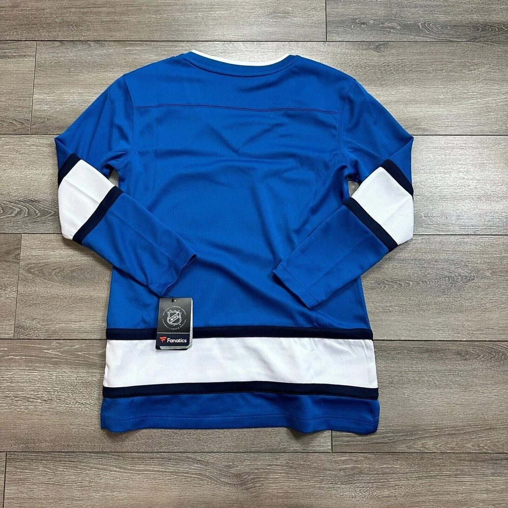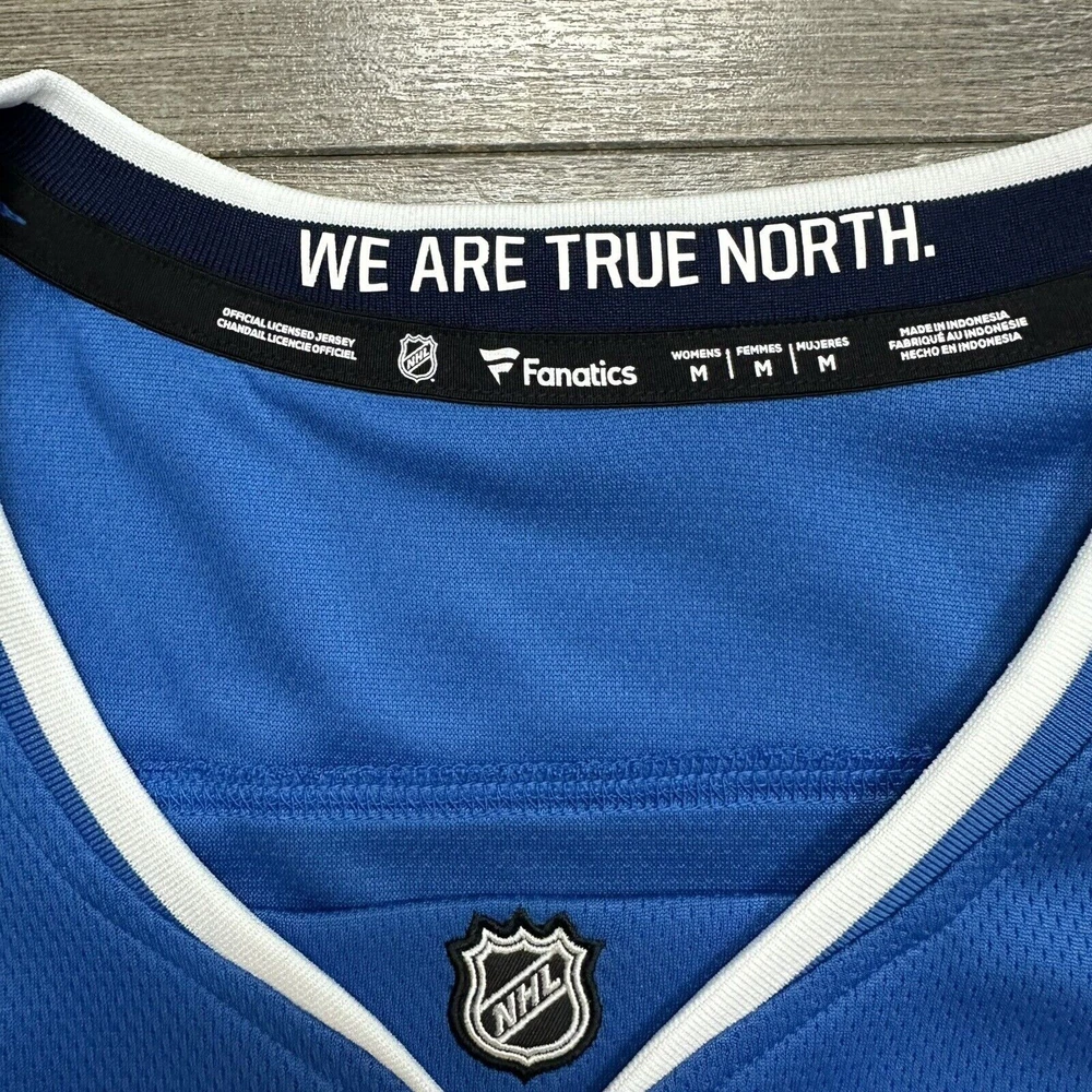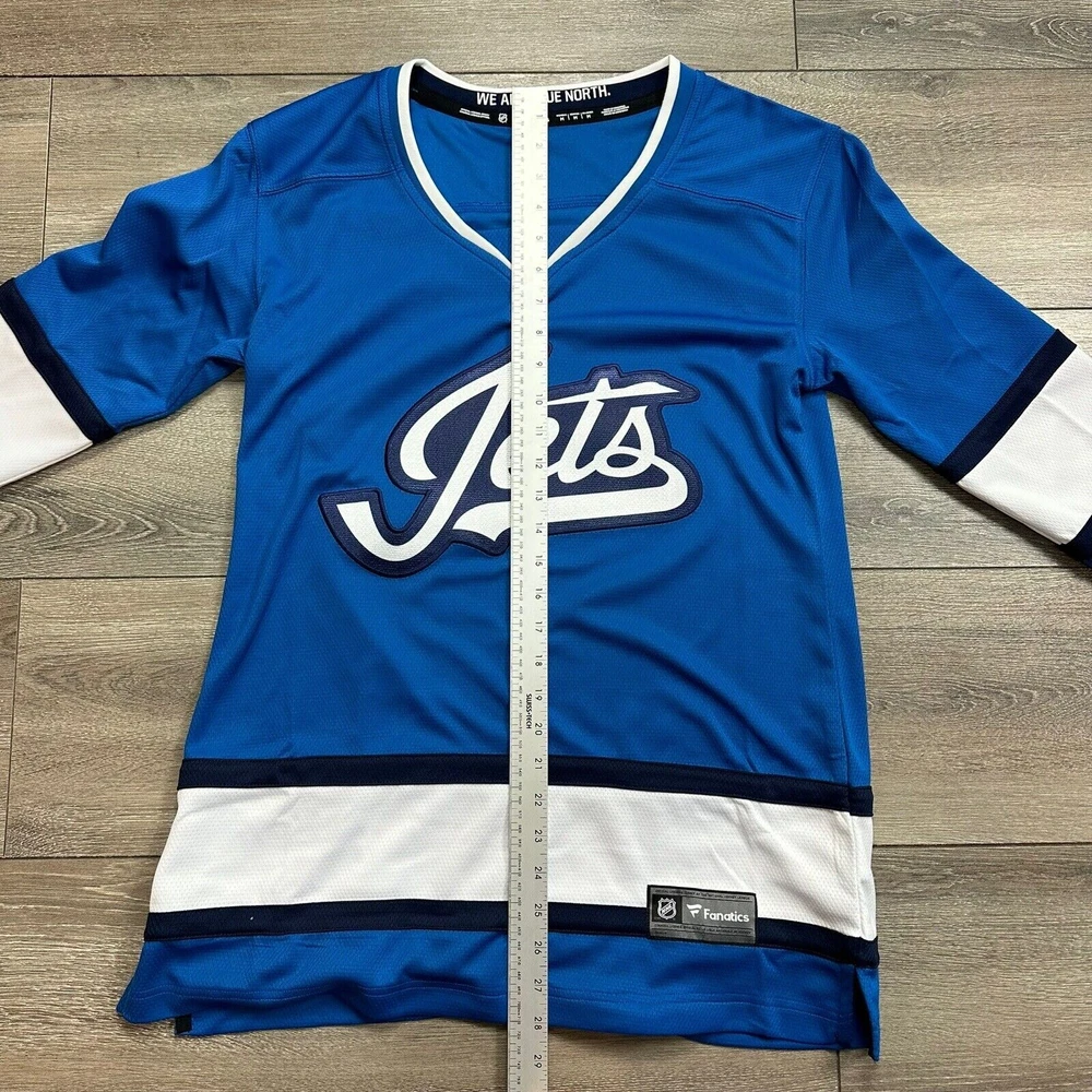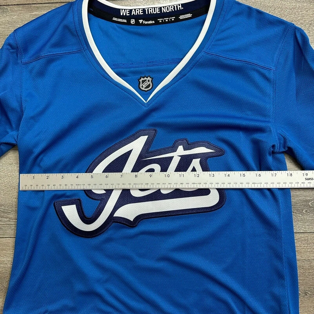Sport:HockeyColor:BlueLeague:National Hockey League (NHL)Product:JerseyPre & Post Season:Regular SeasonGender:WomenBrand:FanaticsSize:MTeam:Winnipeg Jets