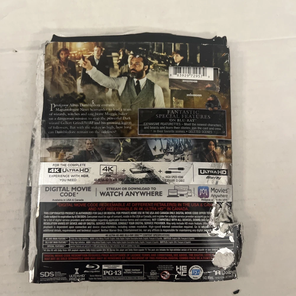gtin13: 0883929729579 Release Year: 2022 UPC: 0883929729579 Genre: Family Rating: PG-13 Sub-Genre: Fantasy Language: English Item Weight: 0.66 lb Movie/TV Title: Fantastic Beasts: the Secrets of Dumbledore Number of Discs: 2 Country/Region of Manufacture: Mexico Item Height: 0.54 in Item Length: 6.56 in Director: David Yates Item Width: 5.55 in Format: Ultra HD Studio: Warner Home Video
