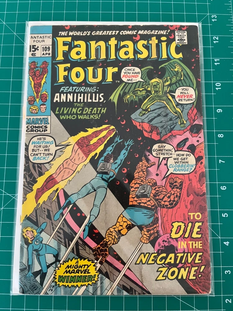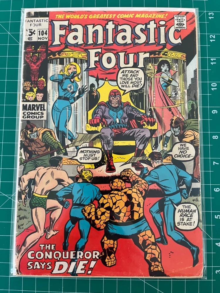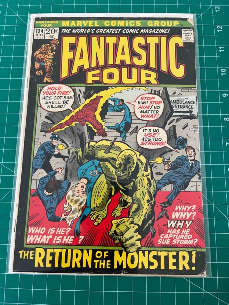 Dive into the bronze age of comics with Fantastic Four issues 100-129. Choose your preferred era and adventure with the legendary Marvel team, featuring iconic characters such as Human Torch, Invisible Girl, Mr. Fantastic, and the ever-brilliant Ben Grimm. These comics, published between 1970 and 1972, showcase the fantastic escapades of one of Marvel's most beloved superhero teams. Each single issue comic book is a testament to the rich tradition of US comics, boasting vibrant color styles and storytelling that continue to captivate fans worldwide. Whether you're a long-time collector or new to the realm of action-packed superheroes, these classic tales of crime, action, and the supernatural are a must-have for your collection. I'm not a professional grader, but I do have a keen eye for conditions. These all range from very good to very fine. a few are on the lower end of Good condition. See the photos for more information. Comic Books are bagged and boarded. Will be shipped in Gemini Comic Book mailer. I will combine up to 5 comics. No International Shipping. Continental United States Only. Please see my other comics for sale at Astounding Books!