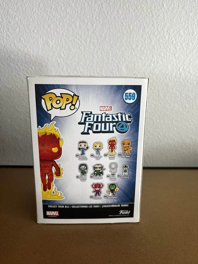 Add this Fantastic Four 4 Funko POP! Marvel Human Torch vinyl bobble head figure to your collection today! This 4-inch figure features the iconic character from the Marvels the Fantastic 4 franchise, Johnny Storm, also known as Human Torch. The figure is made of high-quality vinyl material and comes in its original packaging, unopened and ready for display. This Funko POP! figure is a must-have for any Marvel or Fantastic Four fan, and is part of the Marvel Collector Corps exclusive event/retailer line. The attention to detail on this model is impressive, and it will make a great addition to any collection of action figures or collectible bobbleheads. Don't miss your chance to own this rare and highly sought-after item.