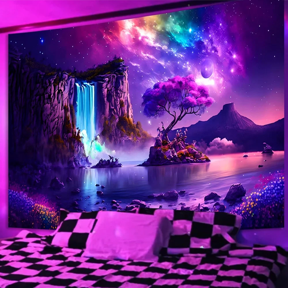 Store New Arrivals Add to Favorite View Feedback Contact Fantasy Waterfall Tapestry Blacklight Wonderland Purple Galaxy Tree Landscape UV Description Item model number LK38M Product Dimensions 59.1 x 51.2 x 0.2 inches Country of Origin China Item Weight 6.7 ounces Size 51.20" x 59.10" Whimsical Design: Immerse yourself in a fantasy world with this stunning tapestry featuring a captivating waterfall, purple galaxy, and tree standing on the river. Its dreamy design adds a touch of magic to any room. Blacklight UV Reactive: Watch as the tapestry comes alive under UV light, revealing hidden details and glowing in vibrant colors. Perfect for creating an otherworldly atmosphere for parties, relaxation, or meditation. High-Quality Material: Crafted from durable polyester fabric, this tapestry is both soft to the touch and long-lasting. Its fade-resistant design ensures that its vibrant colors remain vivid for years to come. Versatile Decoration: Whether hung in your bedroom, living room, or used as a backdrop for events, this tapestry adds a sense of wonder and imagination to any space. Easy Installation: Equipped with a pack of hanging accessory, installation is a breeze. Simply hang it on your wall or ceiling to instantly transform your room. Multiple Sizes: Available in two sizes—51.2" x 59.1" and 59.1" x 80"—choose the perfect size to suit your space and decorative preferences. Easy Care: Machine washable for convenient cleaning, this tapestry maintains its beauty and charm even after repeated washes. Portable and Lightweight: Easy to fold and transport, making it ideal for travel or moving homes. Take the magic with you wherever you go. Create a Whimsical Escape with the Fantasy Waterfall Tapestry - Blacklight Wonderland Purple Galaxy Tree Landscape Wall Hanging Transform your living space into a magical wonderland with the enchanting Fantasy Waterfall Tapestry. Perfect for bedrooms, living rooms, or as a backdrop for themed events, this tapestry brings the beauty of nature and the cosmos into your home. Specification: Color: Purple Theme: Waterfall, Nature Material: 100% Lightweight Polyester Size: 51.2" x 59.1" (130cm x 150cm) & 59.1" x 80" (150cm x 200cm) Shape: Rectangular Other features: One side printed, hand sewn details Package Contents 1 x Blacklight Waterfall Tapestry 1 x Pack of Hanging Accessory Notes 1. Colors may vary slightly due to individual monitor settings. 2. The tapestry size will have an error of 1-2cm for hand-cut. Warm Tips 1. You can use the thumbtacks or mounting tapes to hang the tapestry easily, we also provide some hanging accessories gifts to make you better hanging tapestry! 2. When you received this tapestry, you can use the ironing machine to iron it and then hang it on the wall. Step into a world of fantasy and wonder with the Fantasy Waterfall Tapestry. Whether you're seeking to add a touch of magic to your home or create a mystical ambiance for your next gathering, this tapestry is sure to captivate and inspire. ABOUT US We offer the best prices around on high quality products. Our E-store includes media such as books, movies, music and games while offering electronics, toys, sporting apparel, clothing, tools, general home, garden items and more. SHIPPING We are always working hard to ensure your package arrives as soon as possible. Please understand that some factors like weather, high postal traffic, and the performance of shipping companies are outside of our control. We offer free shipping to the lower 48 states and ship within 2 business days of payment, usually sooner. We do not accept P.O. Boxes. Please provide a physical address. For shipping outside of the continental USA, we only use eBay's Global Shipping Program.The item is shipped to KY and then sent to the rest of the world. International customers are responsible for all duties and taxes. Continue to 'check out' to calculate costs for shipping the item to your country. Messages regarding eBay's Global Shipping Program MUST be directed at eBay EXCLUSIVELY. RETURNS We offer a 30-Day Return Policy on items in which you are not completely satisfied with. You have the option of a full-refund or an exchange of the item. No returns are available on items shipped outside of the USA. PAYMENT We accept PayPal. CONTACT US This page content is yet to come Please ad us to your favorite seller and visit again later Thank You CUSTOMER SATISFACTION We try our very best to make sure every customer is completely satisfied. If there's a problem, message us! We're happy to help.