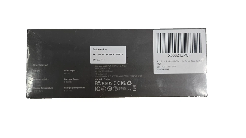 The Fanttik X9 Pro Portable Tire Inflator is a compact and lightweight electric inflator designed for use with compact cars, electric bikes, and motorcycles. This rechargeable device operates at a maximum working pressure of 150 Psi and is powered by a 5V voltage source. The portable design makes it convenient for on-the-go use, ensuring you can easily inflate tires whenever needed. The sleek black color and brand name Fanttik add to the overall appeal of this convenient tire inflator.
