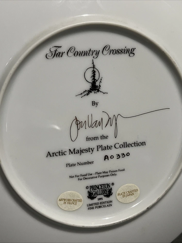 This collector plate from the Arctic Majesty Plate Collection features a stunning wolf character in a woodland pattern. The round plate has a diameter of 8 inches. It is made of porcelain and produced using the pottery technique in the late 20th century. This antique plate is stackable and decorative, perfect for all occasions. The vintage style and American culture make it a unique addition to any collection. Add this beautiful piece to your collection today! This plate is in excellent condition. We will not be available from December 19th- January 6th. Any purchases made during that time will be shipped when we return.