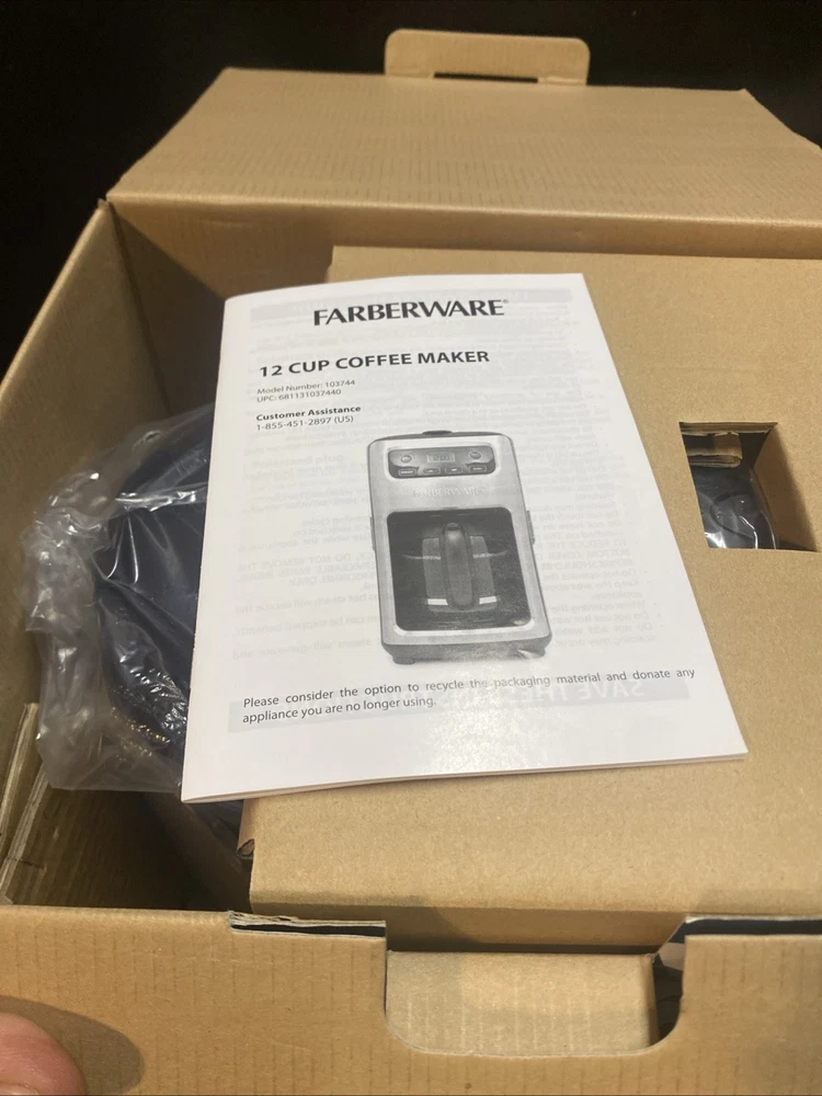The Farberware 12 Cup Gourmet Brew System Digital Coffeemaker is a sleek silver coffee maker with a removable filter basket and programmable features. It has a digital control panel for easy use and an auto shut-off function for safety. This new open box appliance by Farberware is perfect for brewing delicious filter coffee with its convenient design and advanced settings. Excellent unused condition in open box