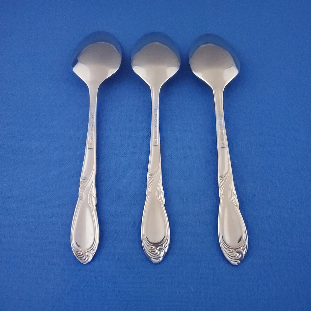 Farberware CAMEO Stainless Set of 3 Teaspoons 6 1/4" Indonesia Glossy Flatware These beautiful pieces are in Used Condition. There are some marks, scuffs, nicks and surface scratches consistent with age and use. Please view the photos carefully for condition details. Don't forget to check out the other items in my shop. I'm getting in new fun things all the time. Thank you for looking! Have a great day!