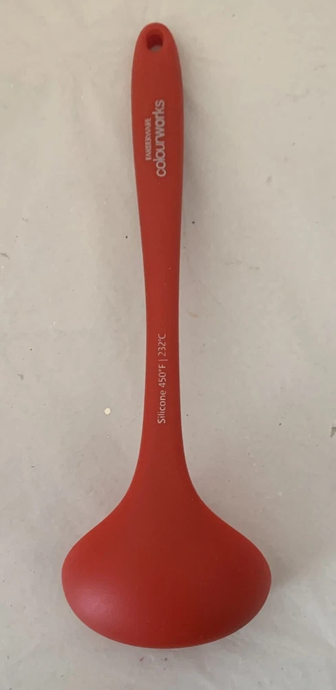 Brand: Farberware Material: Silicone Type: Ladle Color: Red