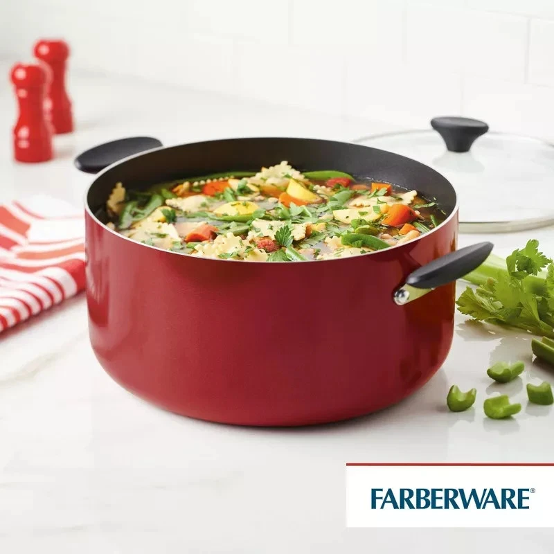 This Farberware stockpot is a kitchen game-changer! The sturdy aluminum heats evenly, and the nonstick interior makes cleanup a breeze. Love the vibrant red exterior—it brightens up my stove. The double-riveted handles feel secure, even when full. Perfect for soups, pasta, or big-batch meals. Just remember to use medium heat to keep the nonstick in top shape. Dishwasher-safe is a huge plus! Highly recommend for hassle-free cooking.